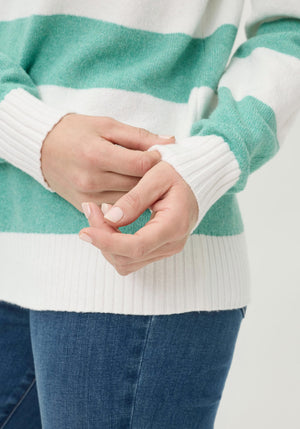 This sweater refreshes your wardrobe with bold stripes and a modern, sporty look.