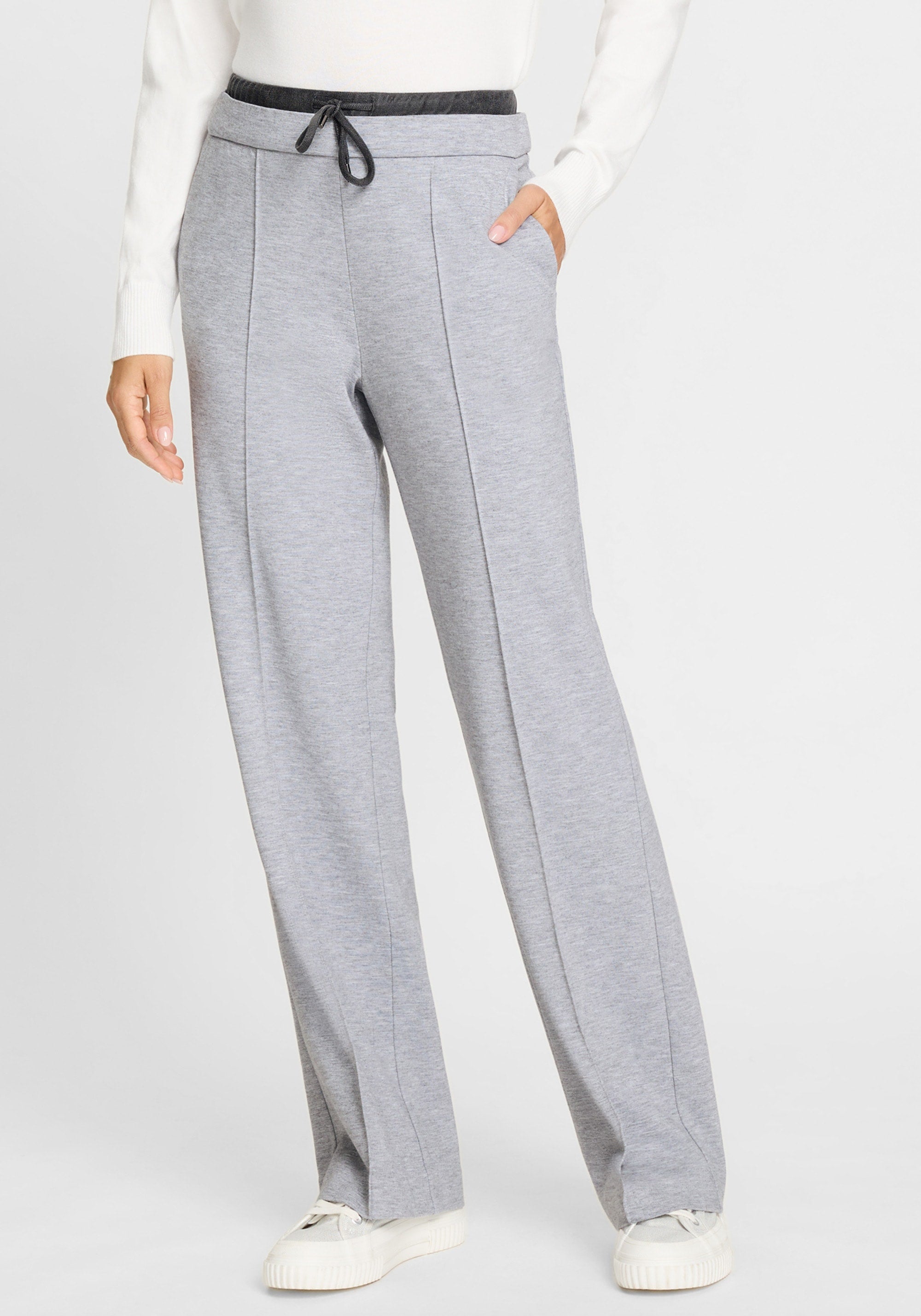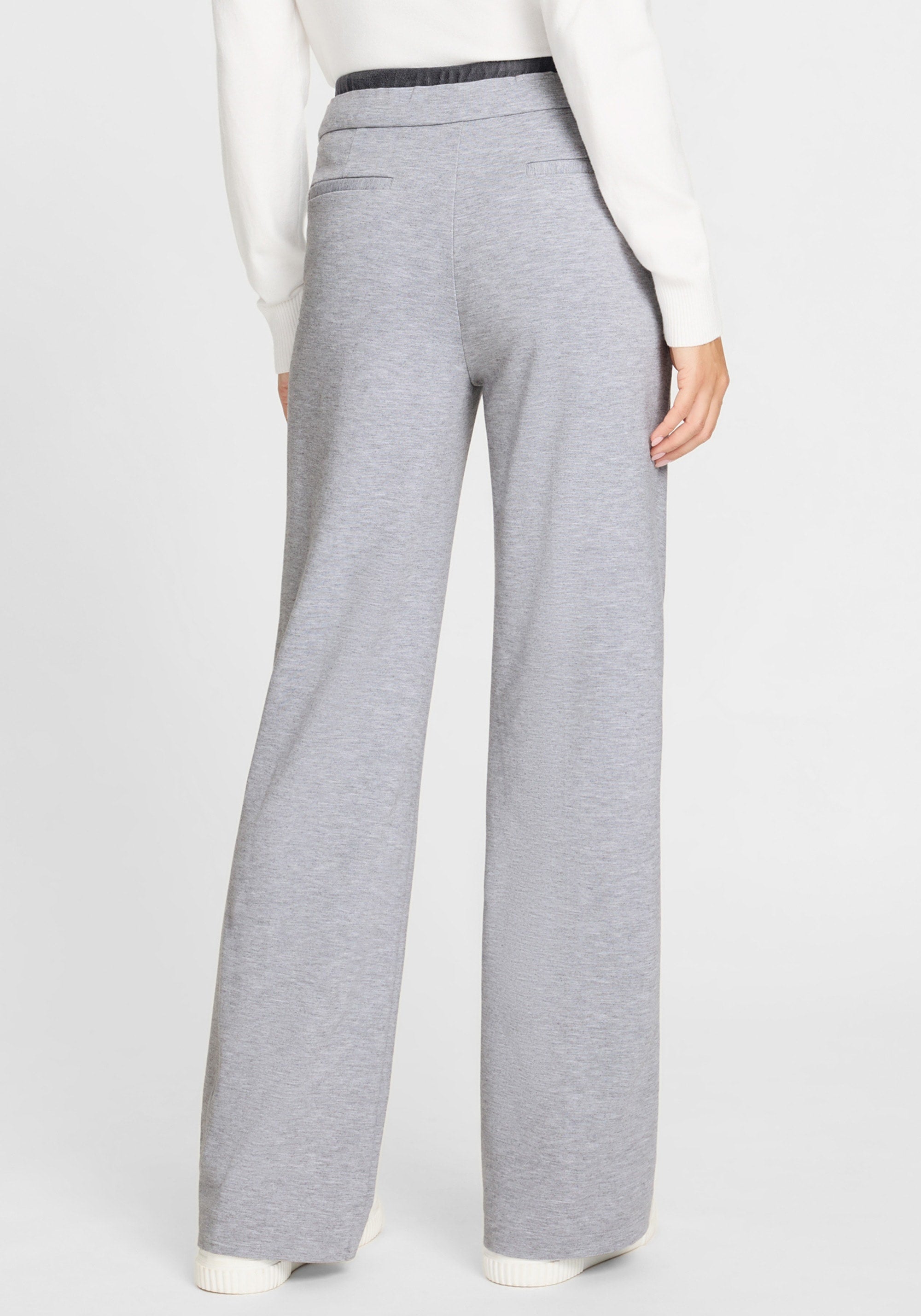 These wide-leg trousers combine generous stretch with a classic heather grey shade for a polished look that feels like your favorite athleisure wear.