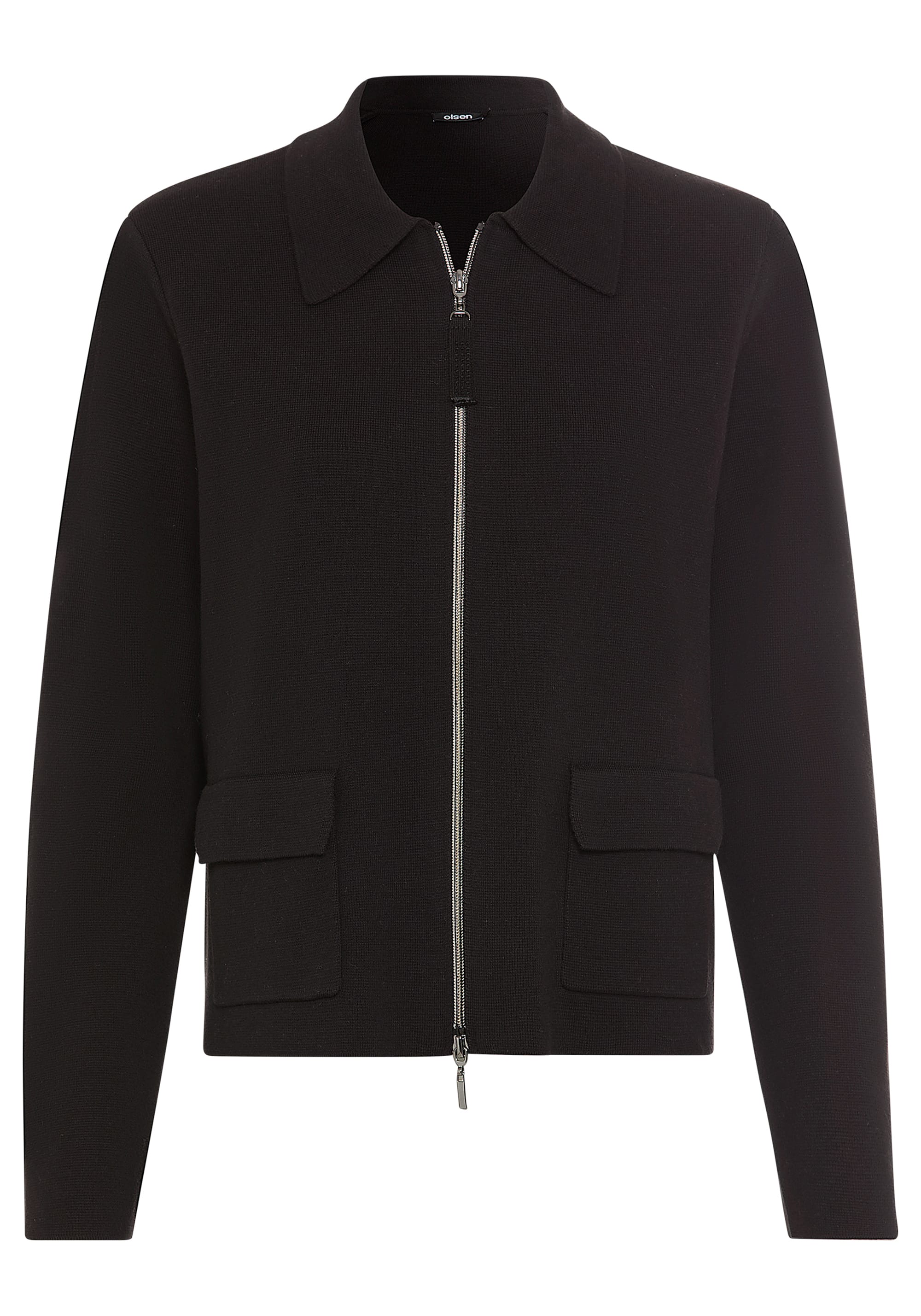 A sophisticated take on the classic cardigan, elevated by its turned-down collar and chic details.