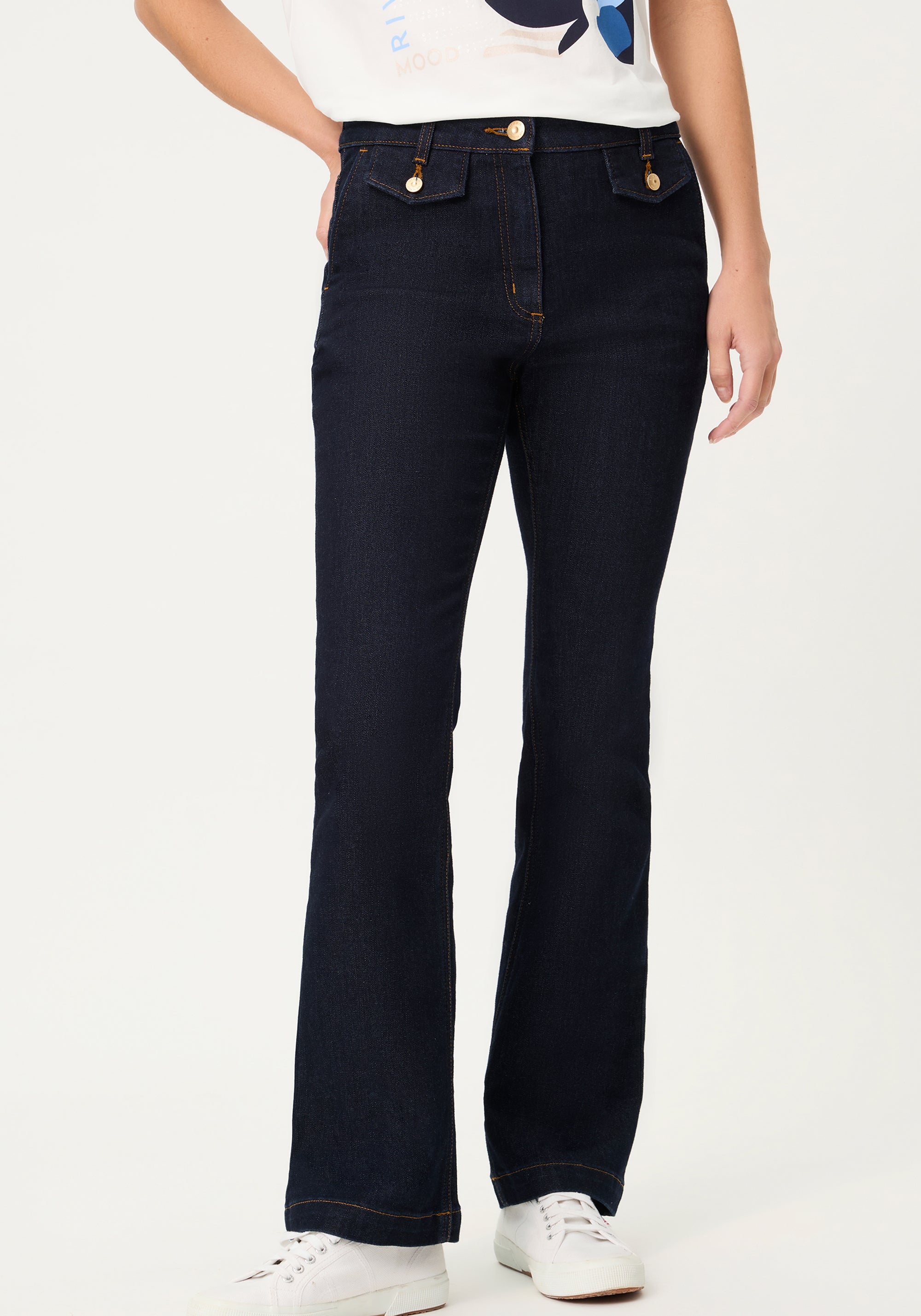 A polished denim essential, these jeans offer a feminine silhouette with a modern bootcut shape that elevates everyday dressing.