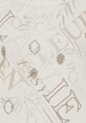 An ultra-soft jersey knit top that combines comfort with eye-catching sparkle.