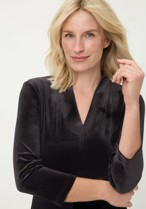 A velvet dress with a luxurious subtle shimmer that feels both elegant and timeless.