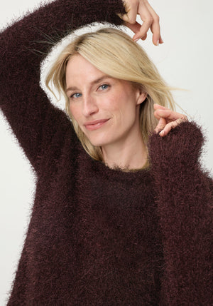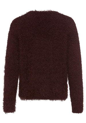 Luxurious and playful, this sweater makes a statement with its allover fluffy feather yarn texture.