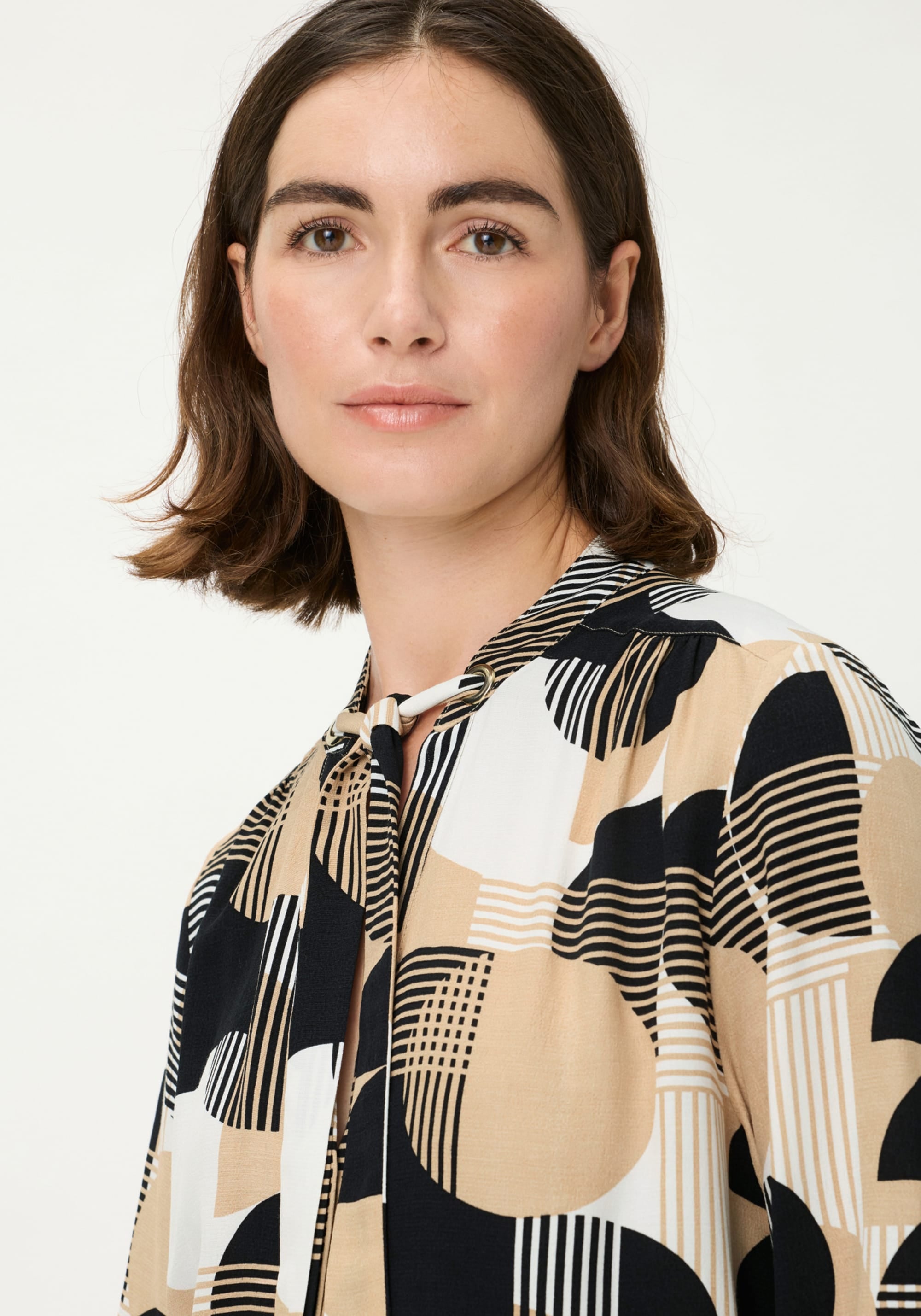 A striking blouse that blends modern design with feminine details.