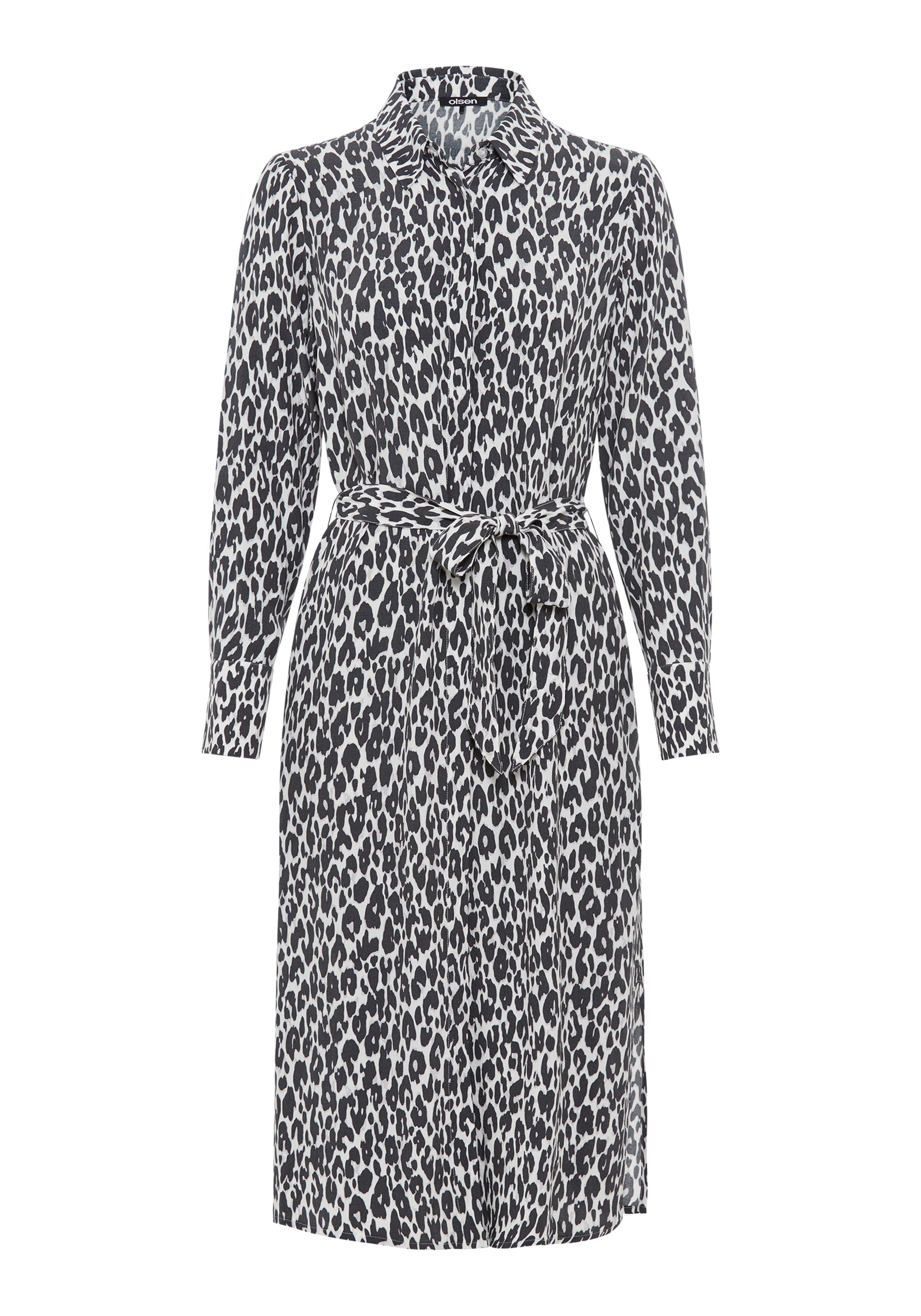 Classic leopard print in shades of grey gives this timeless shirt dress a striking wow-factor.