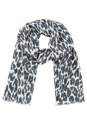 A mid size scarf adorned in classic leo print.