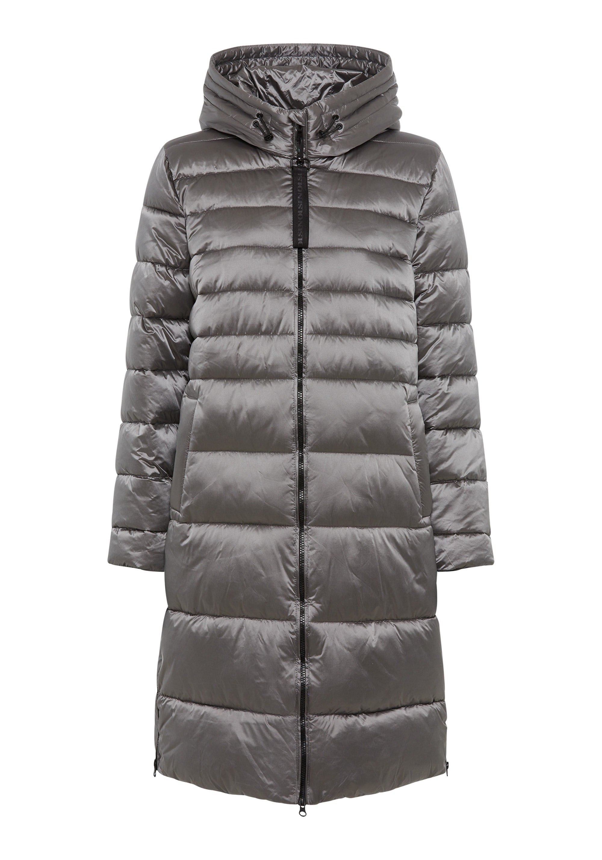 This long puffer coat features a subtle allover sheen for added style. The featherless treatment is designed to mimicthe look and feel of natural down and perform even when wet.
