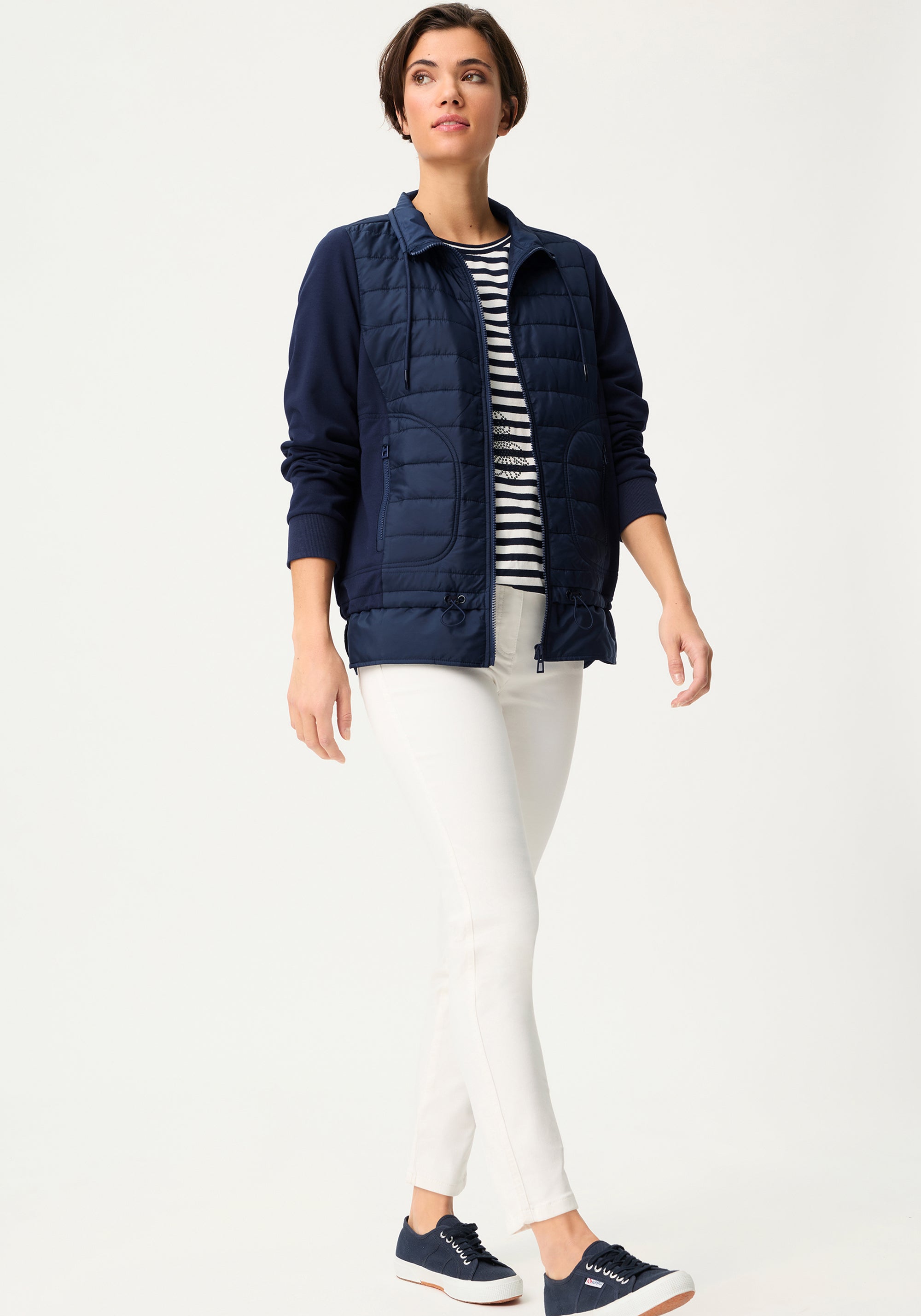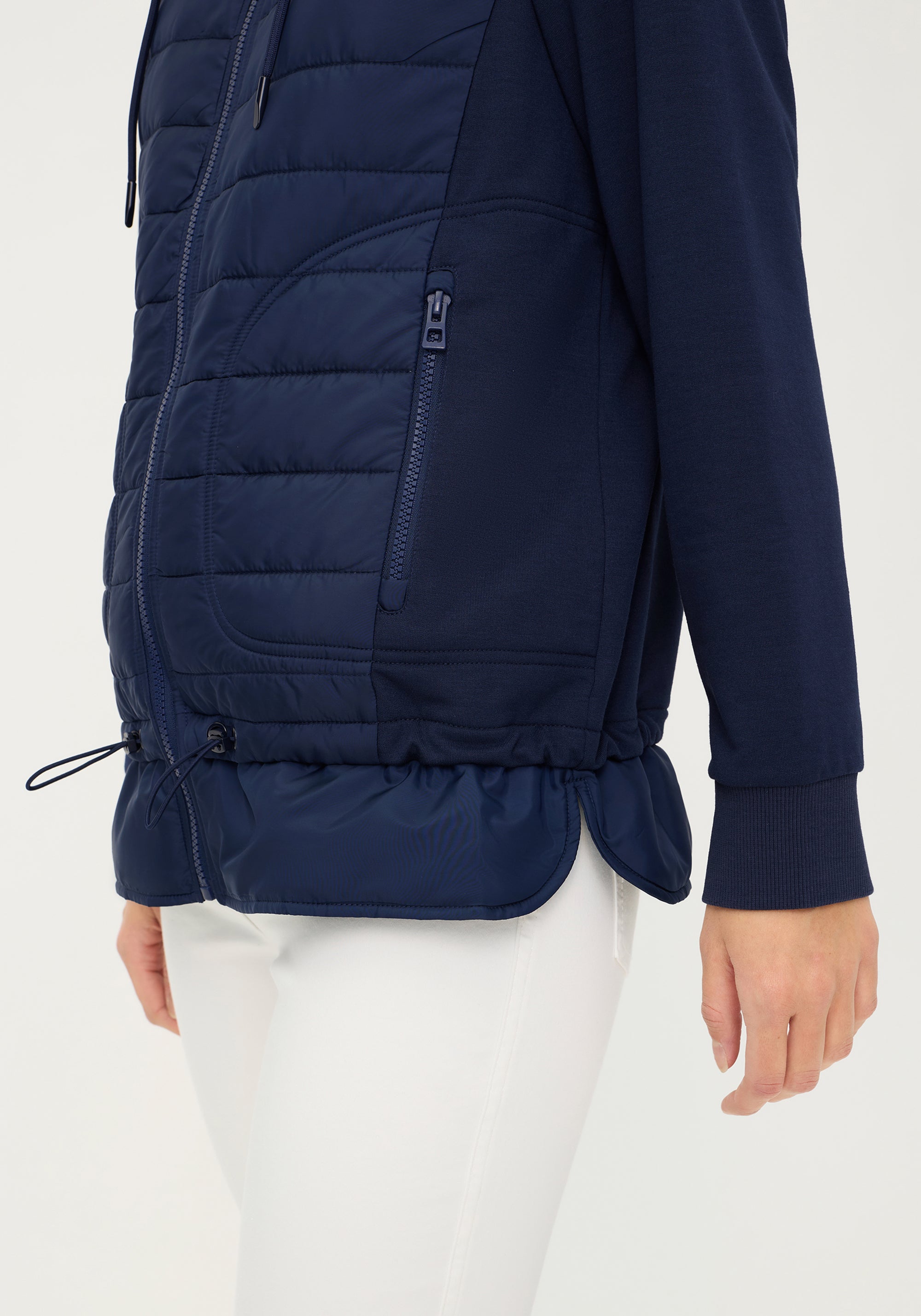 A must-have jacket for the season, this trendy style blends sporty design with cozy comfort in a modern material mix.