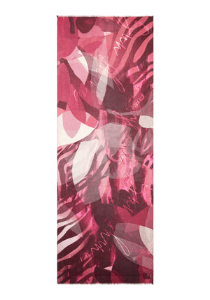 A mid-weight, mid-size scarf that makes a statement with its bold allover abstract pattern.