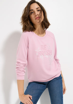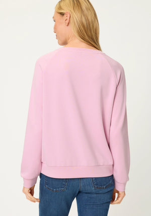 A modern, feminine sweatshirt crafted from soft, stretchy jersey, featuring a front design and sporty raglan sleeves for an effortlessly stylish look.