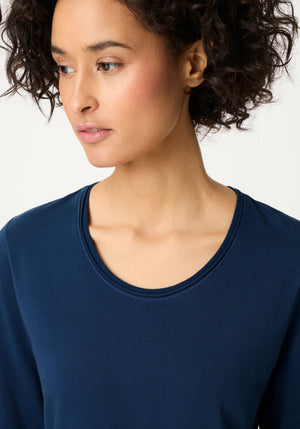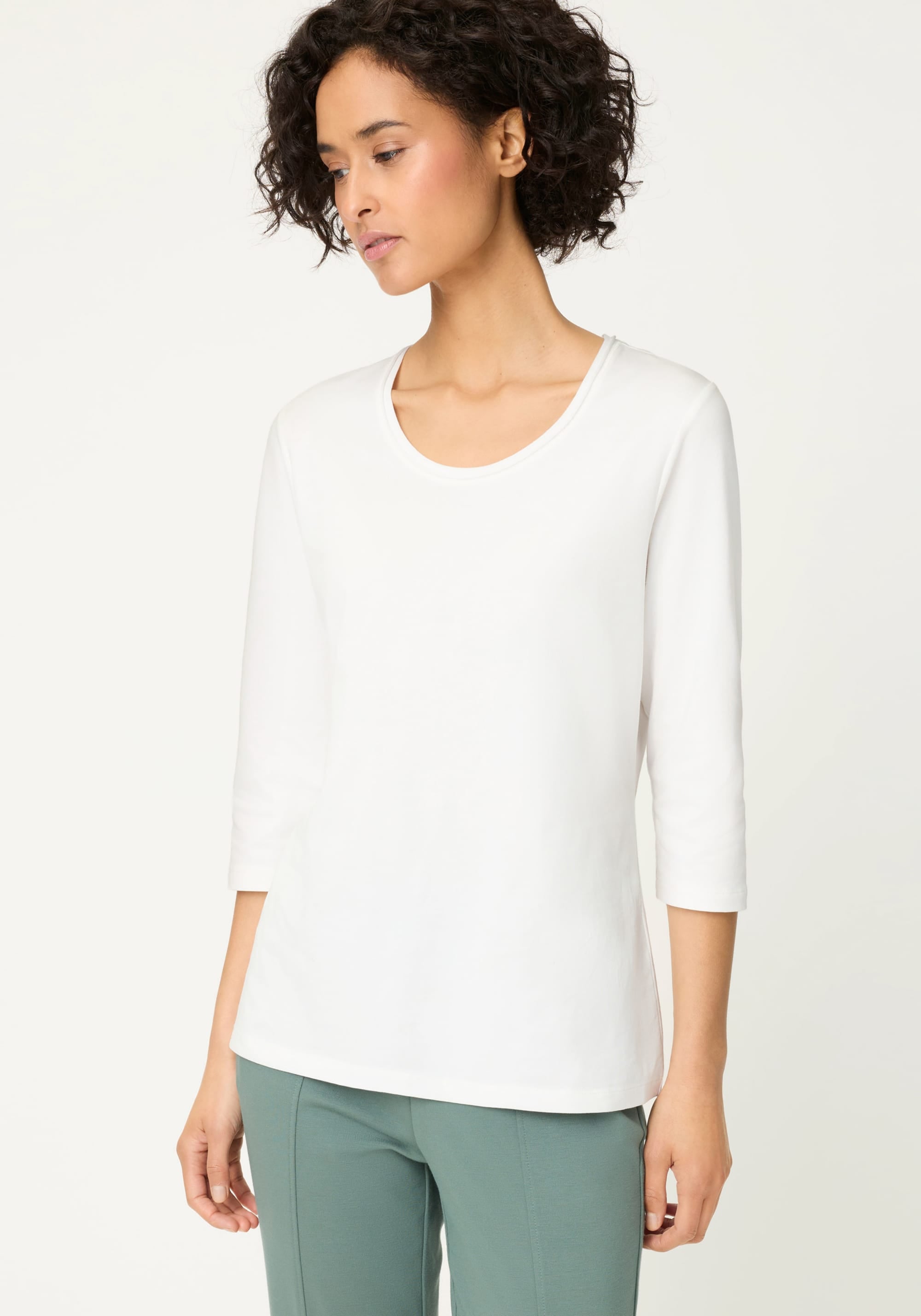 • Designed in the close-fitting Olsen Edda fit, it features a round neckline, feminine 3/4 sleeves, side slits, and a straight hem with fine cuffs for a modern finish.