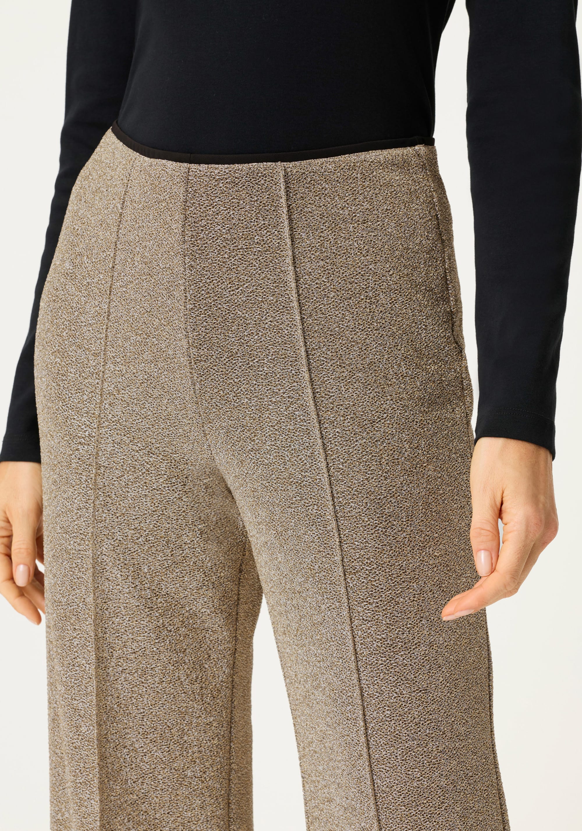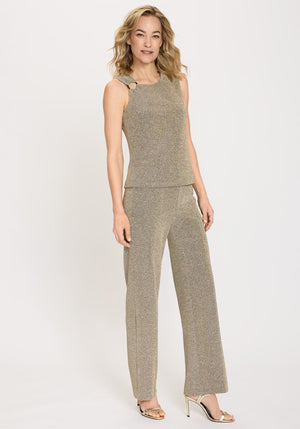 Made in a stretch-friendly fabric with shimmering metallic shades, these pants bring a touch of festive elegance.