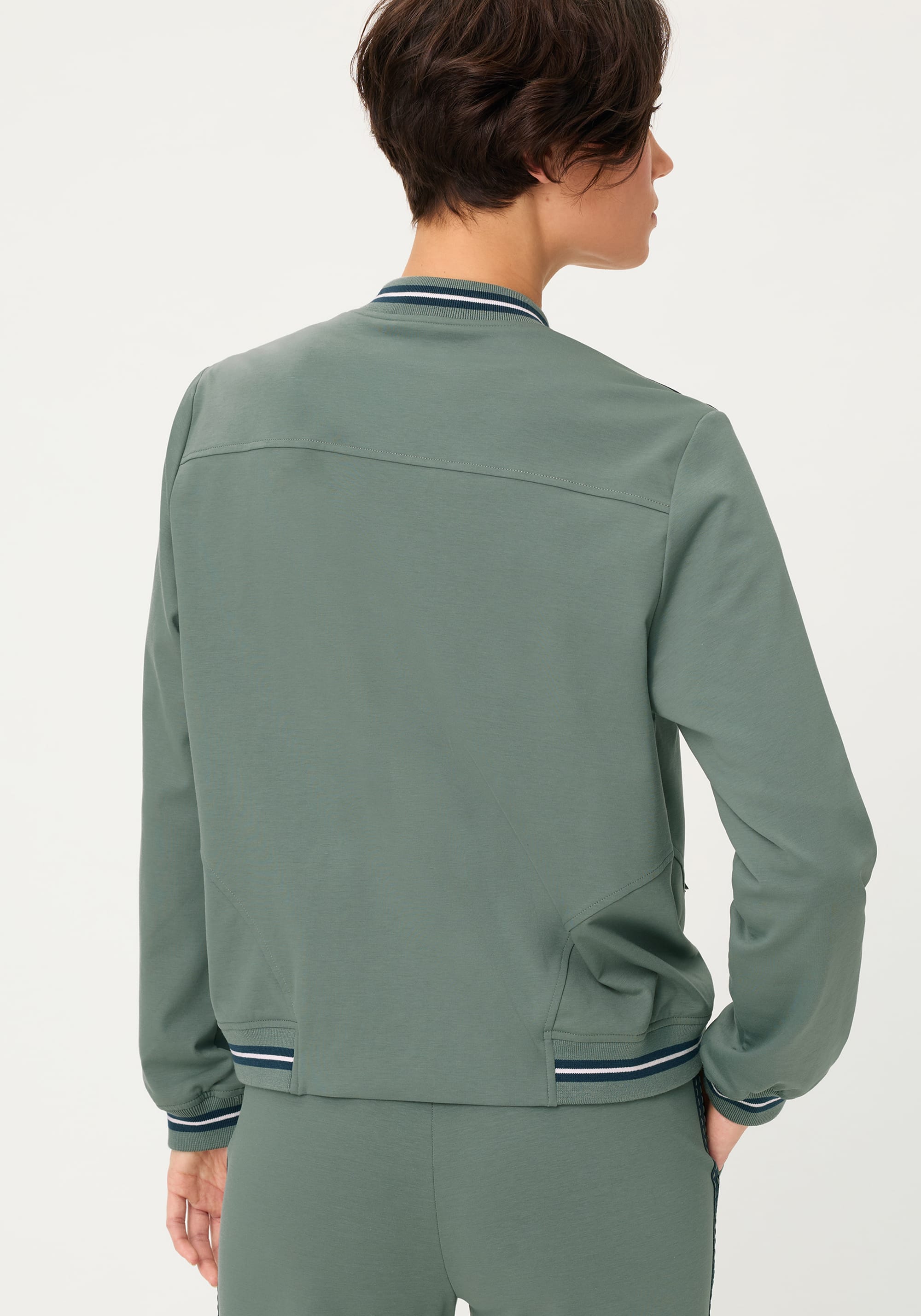 A cool, sporty statement piece, this zip-front jacket delivers effortless athleisure style with striped knit details – perfect worn solo or as a coordinated tracksuit with the matching side-stripe pant.