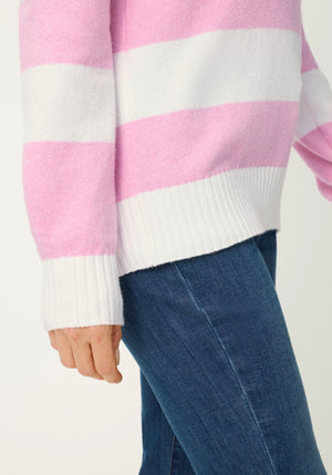 This sweater refreshes your wardrobe with bold stripes and a modern, sporty look.