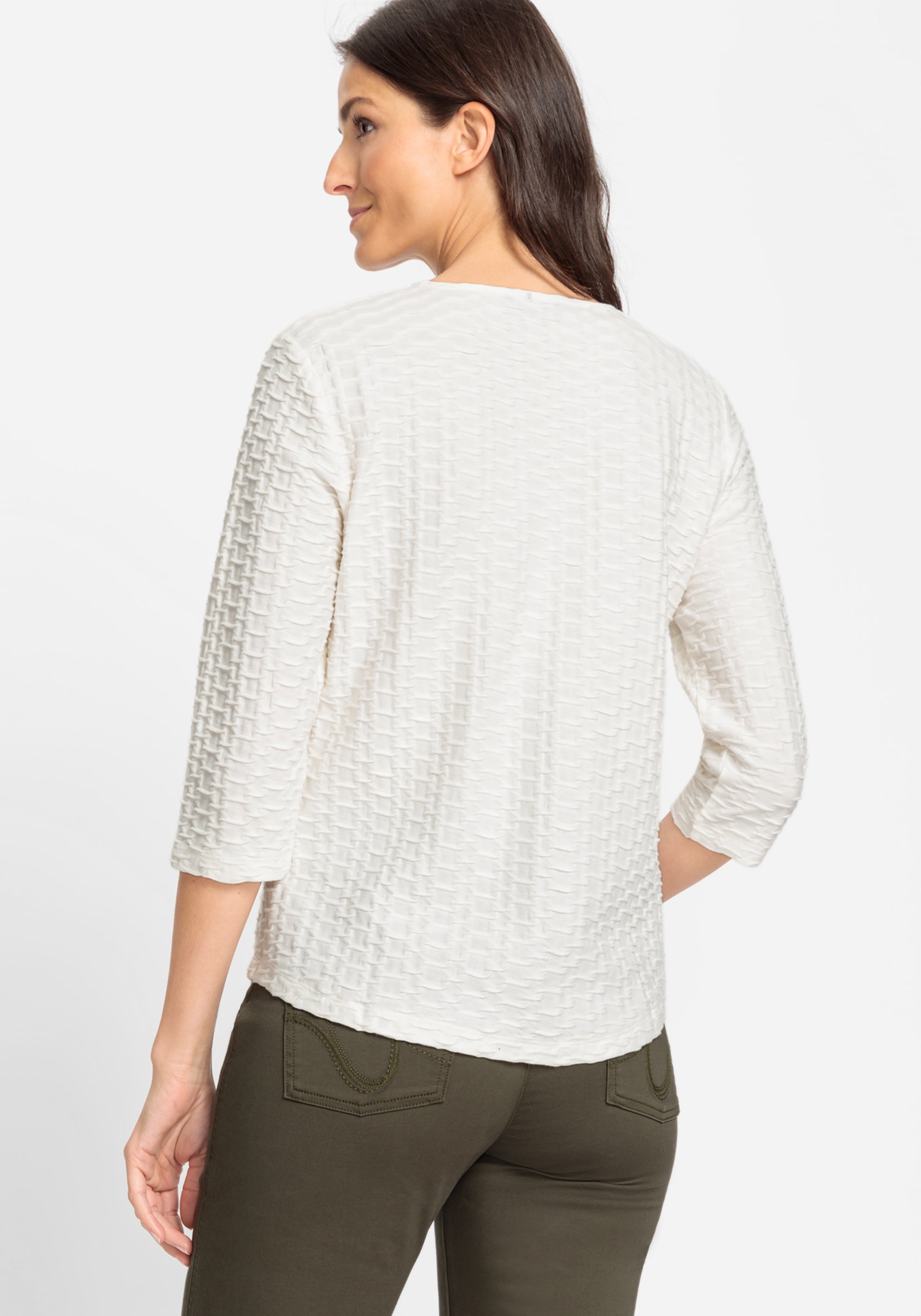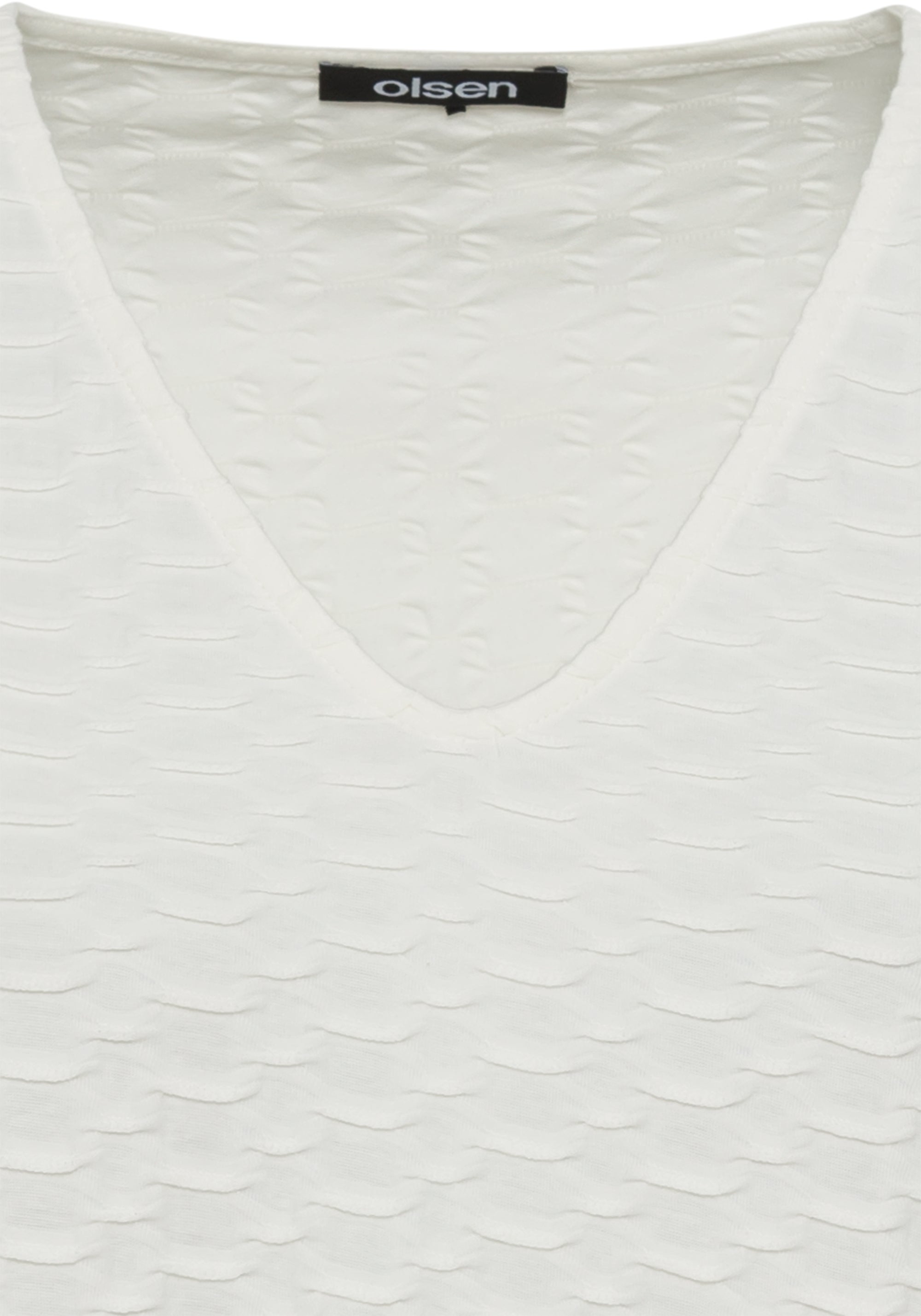 A midweight v-neck t-shirt adorned in a delightful allover woven texture.