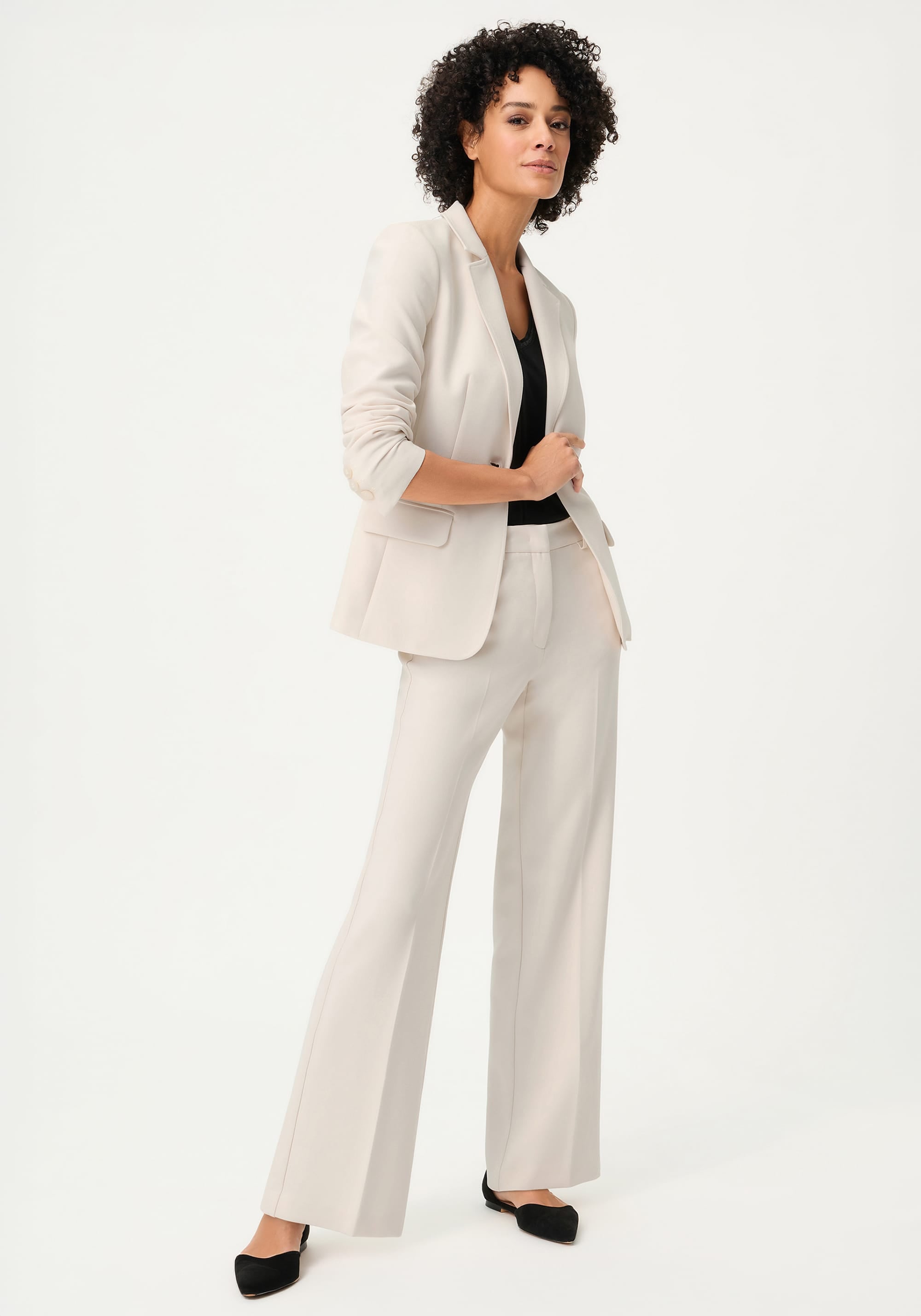 A polished wide-leg trouser designed for modern elegance, offering a fluid drape and refined finish that elevates both office and occasion looks.