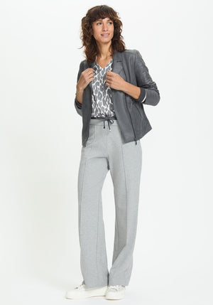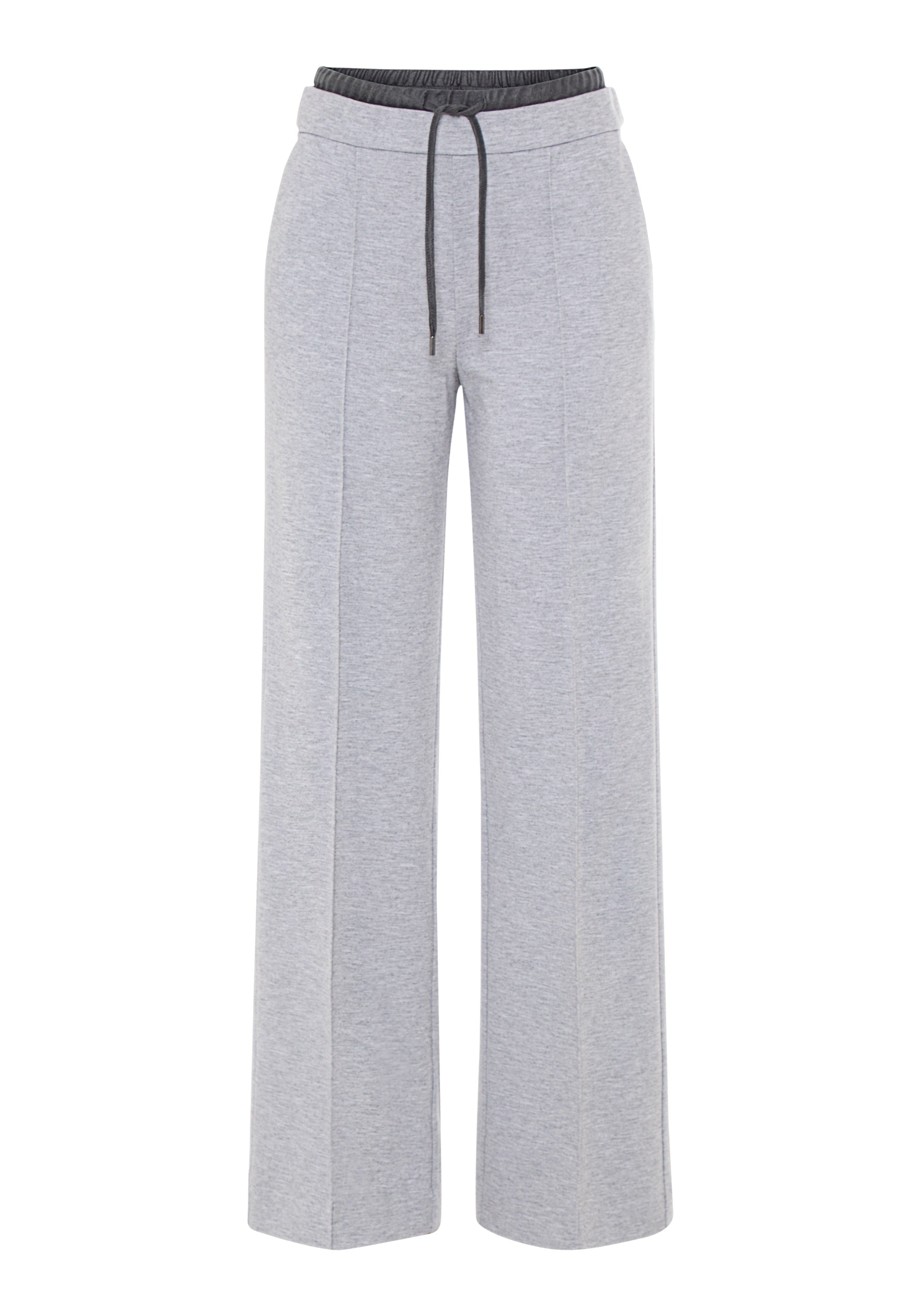 These wide-leg trousers combine generous stretch with a classic heather grey shade for a polished look that feels like your favorite athleisure wear.