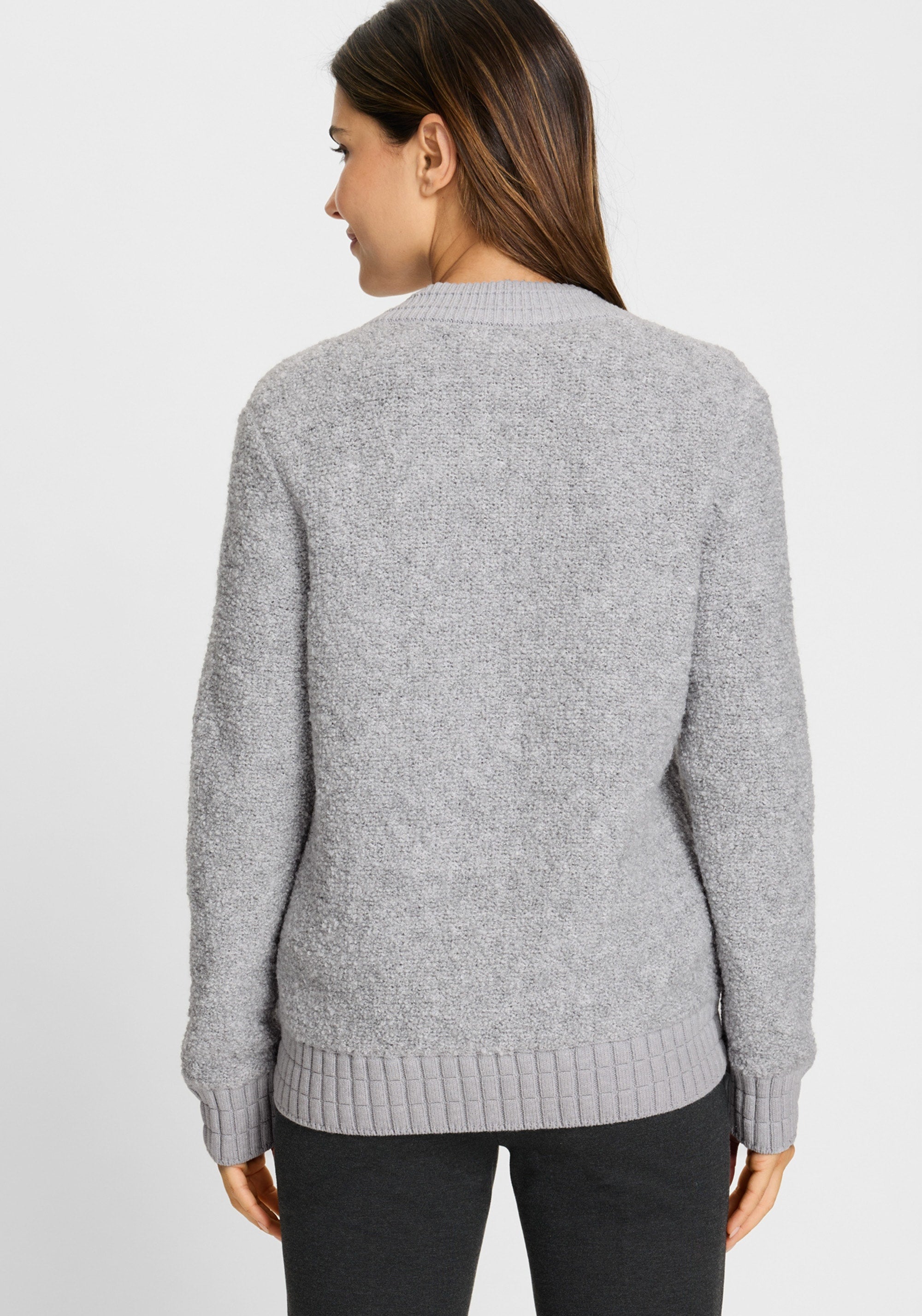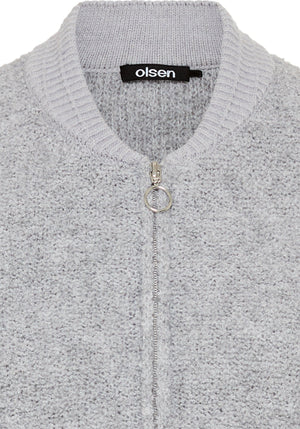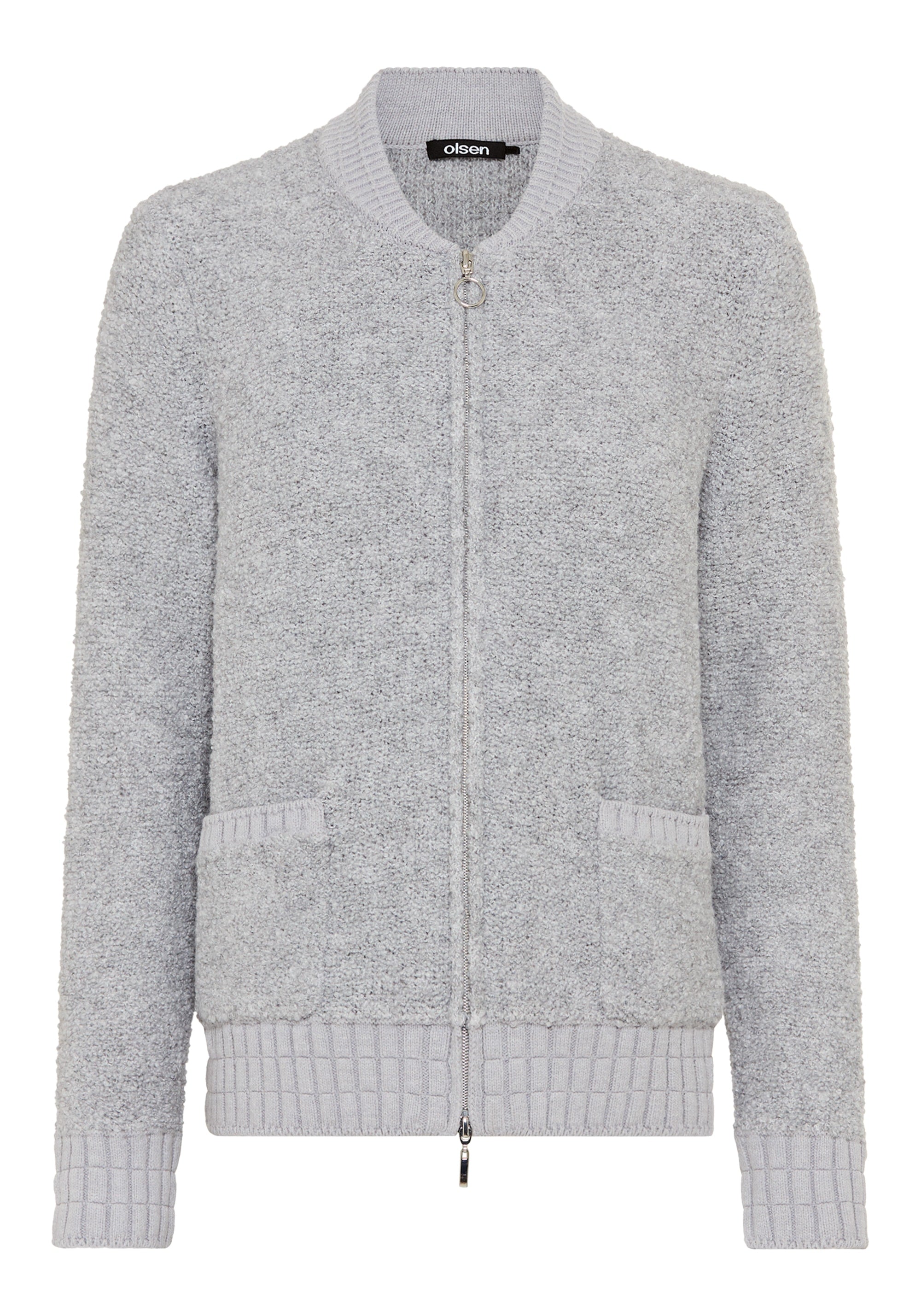 Mixed knitwork adds texture and interest to this versatile, warm zip-front cardigan.