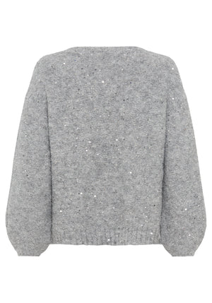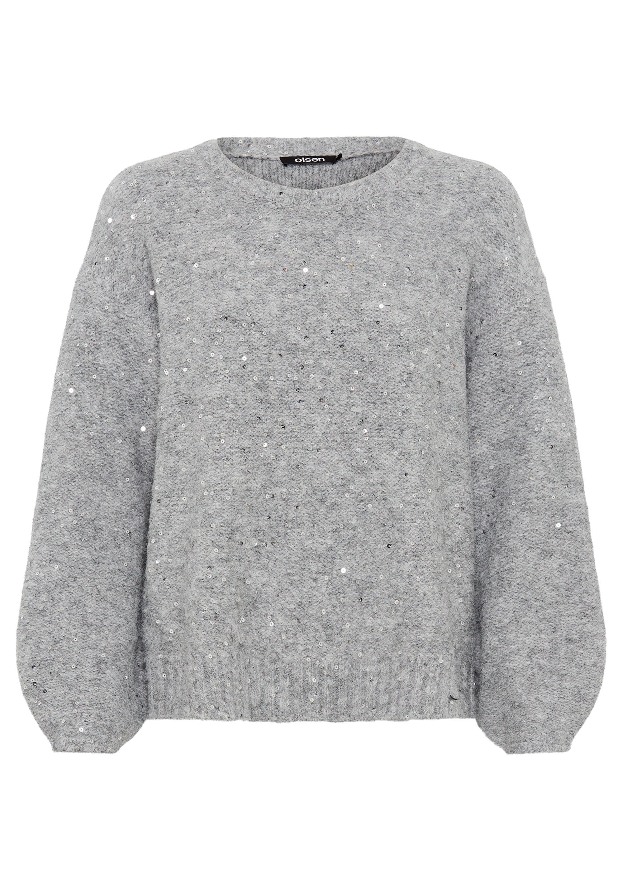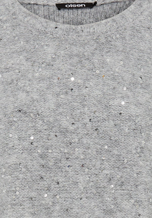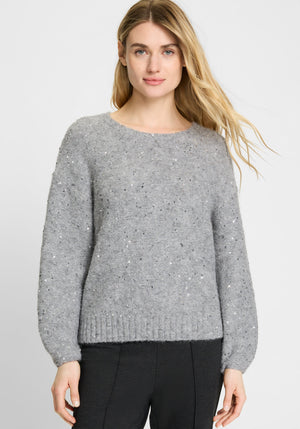 This lofty oversized sweater is adorned with allover sequins, adding the perfect amount of sparkle to a cozy design.