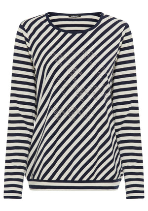 This soft diagonal striped t-shirt features silver-tone rhinestones arranged in an abstract pattern at the centre front for eye-catching detail.