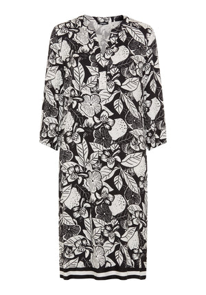A lightweight dress that makes a statement with its bold black-and-off-white floral print, offering modern femininity with an airy feel.