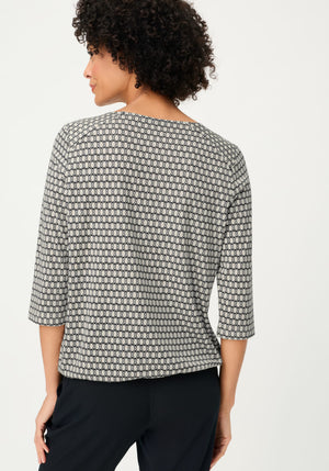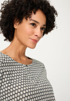 Un essentiel facile à porter au quotidien au charme féminin, mis en valeur par un imprimé géométrique délicat et une encolure tunique flatteuse pour un style sans effort.