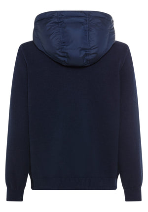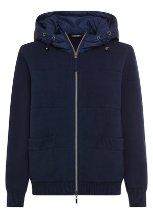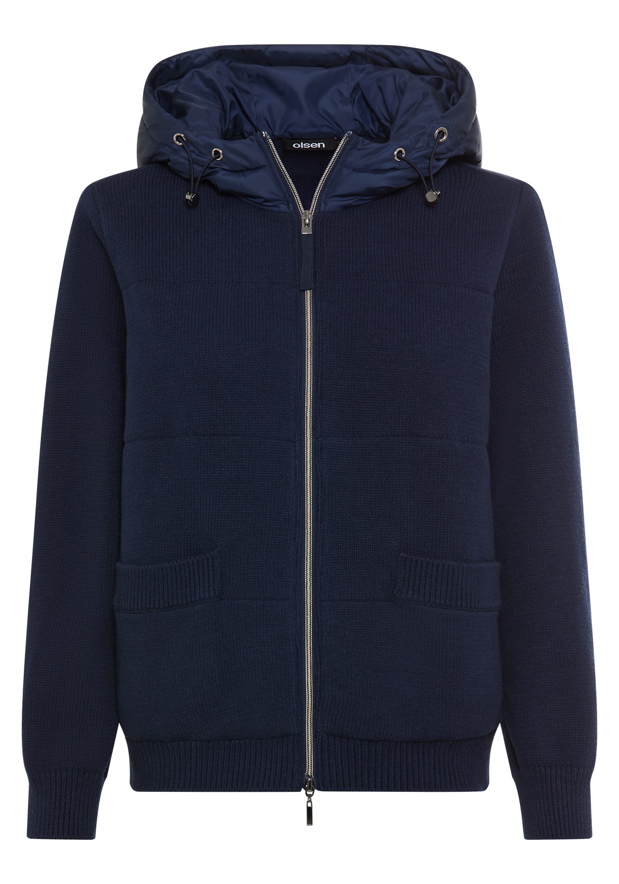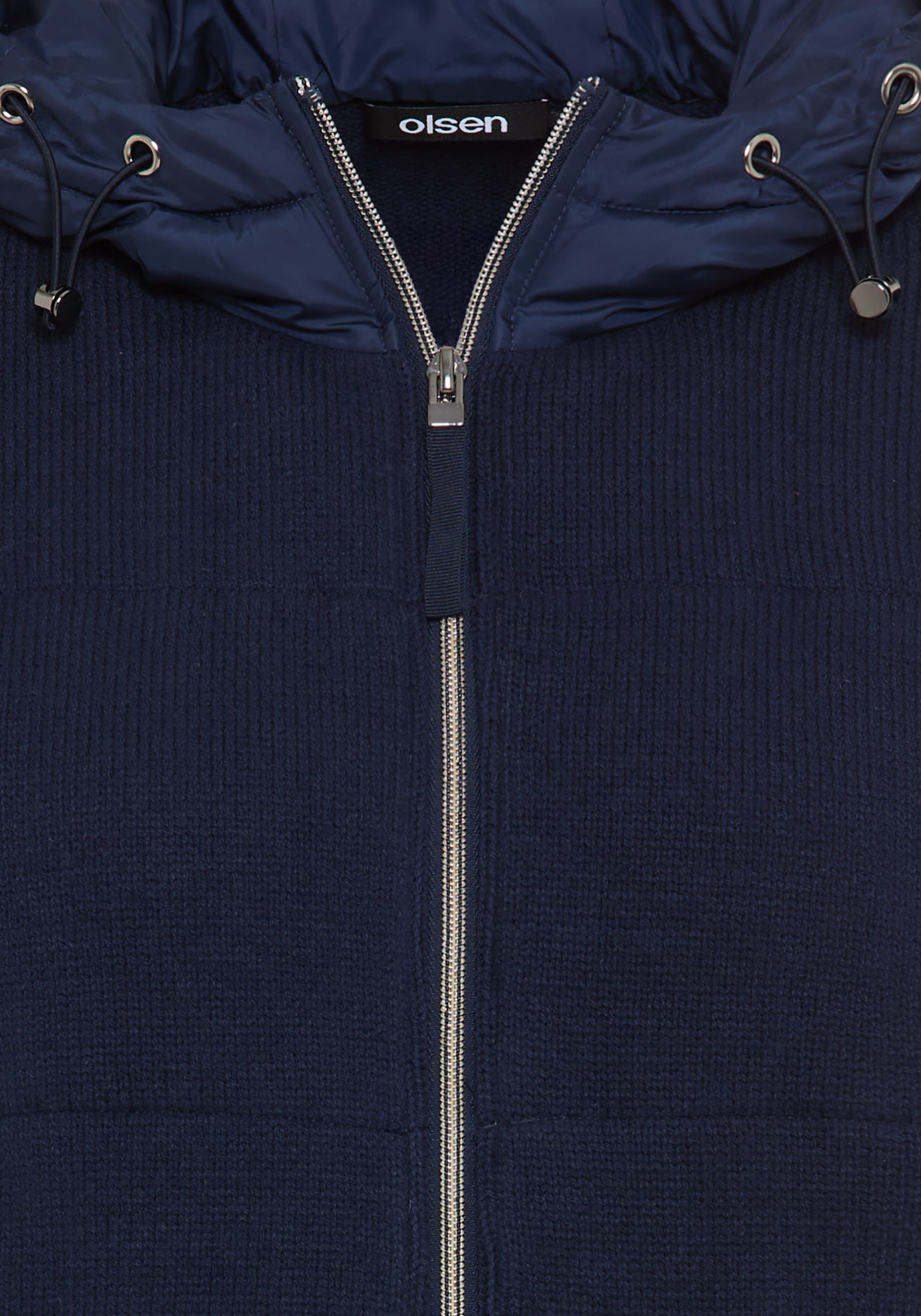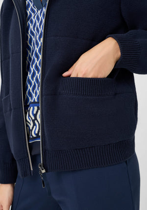 This zip-front cardigan features padded insulation on the inside front to block cold and provide extra warmth.