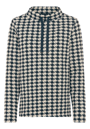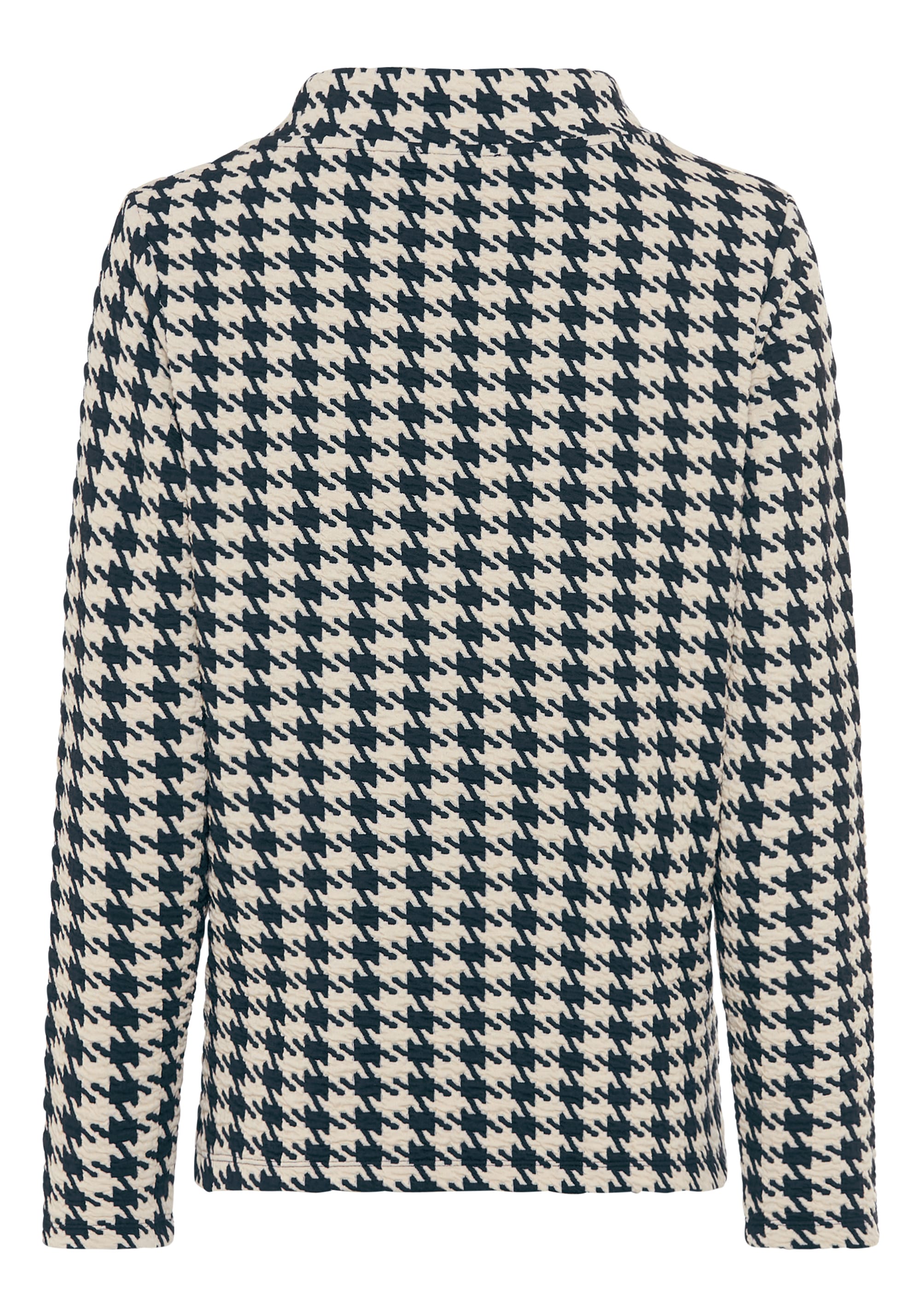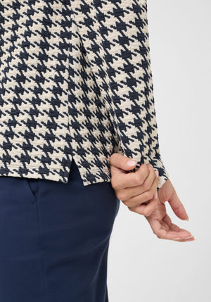 Tis jersey top is dressed up with an allover houndstooth pattern and subtle crinkle effect for added texture.