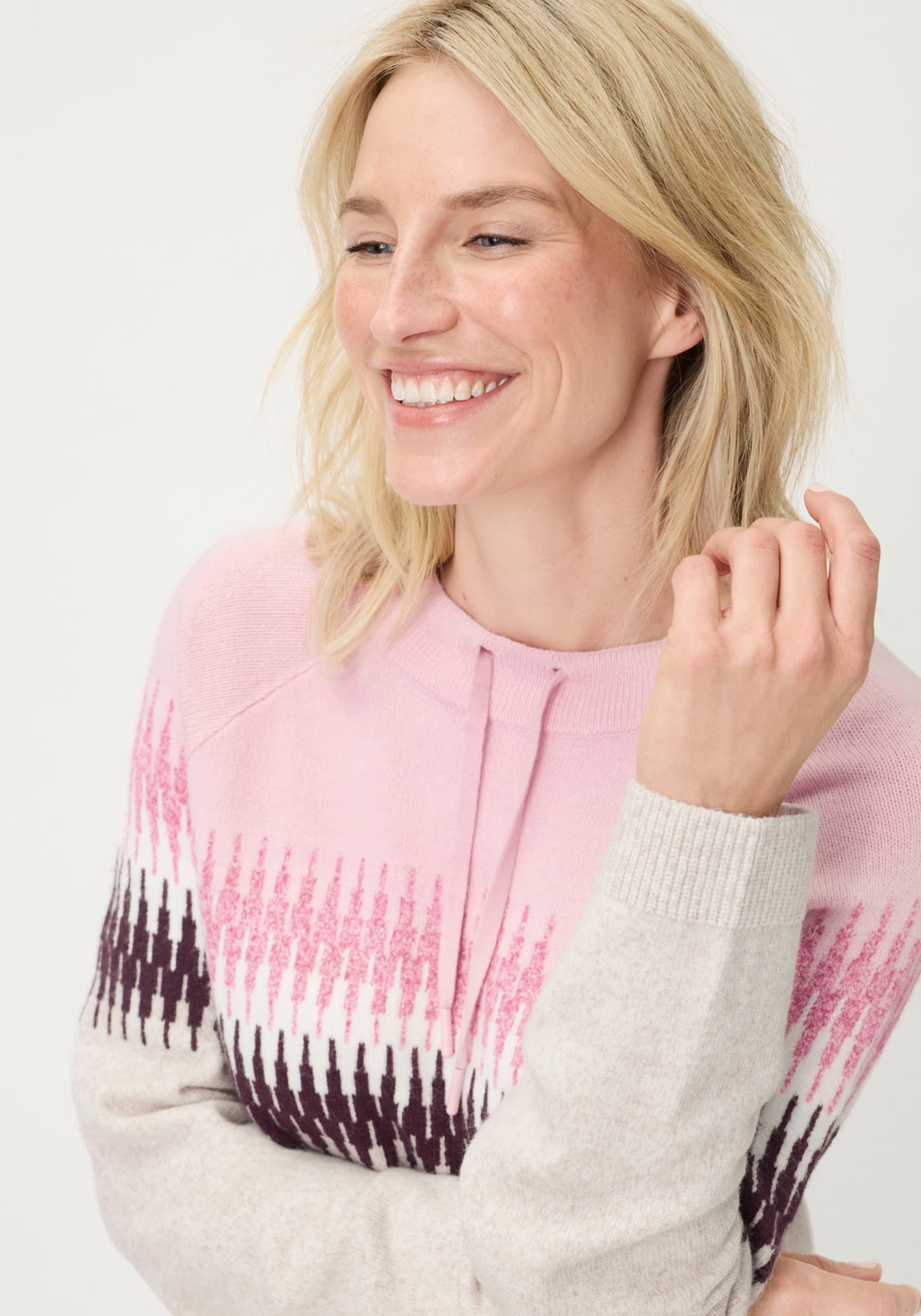 With its mix of soft, cozy solid and mélange yarns, this sweater is both stylish and comfortable.