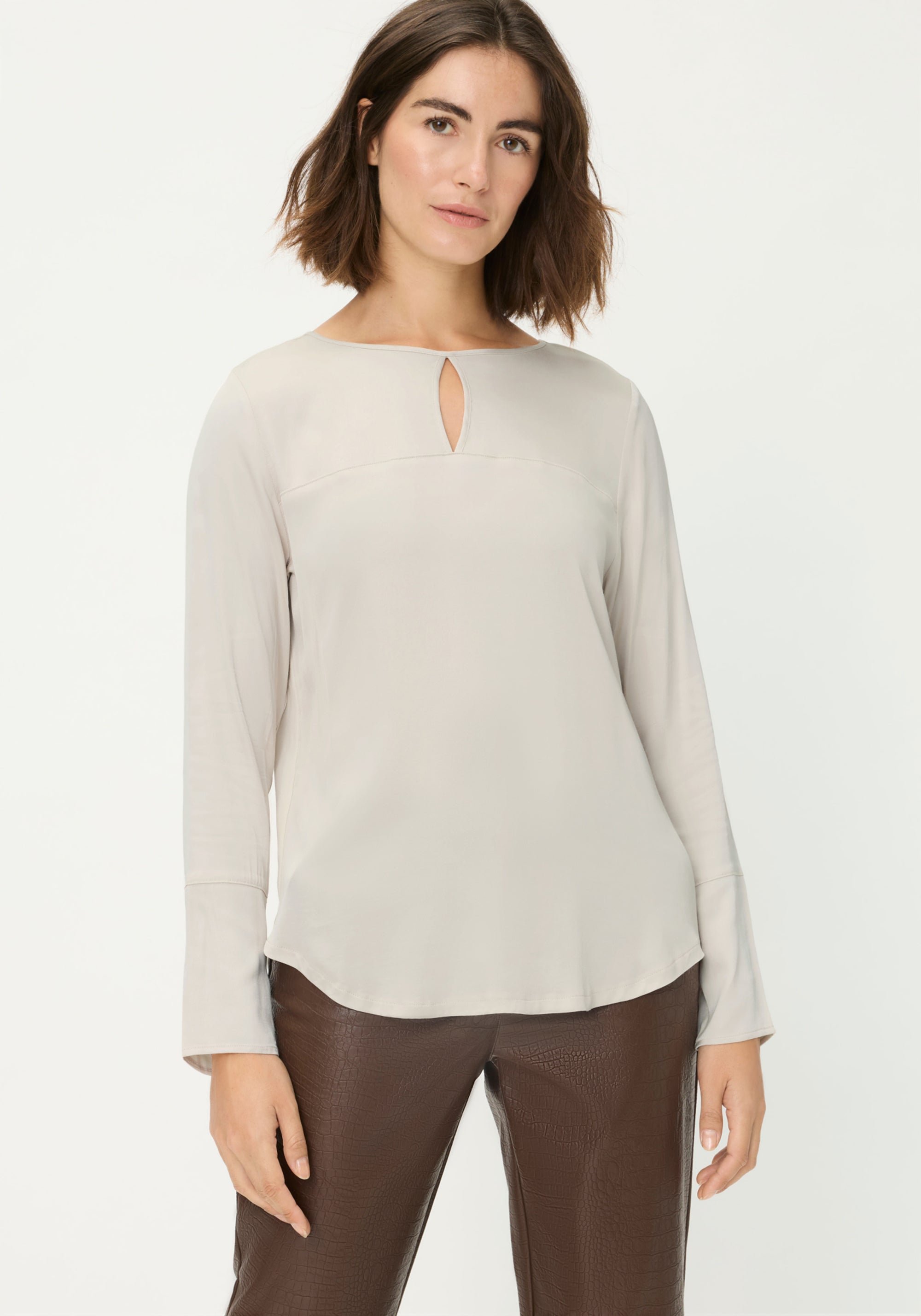 A chic t-shirt silhouette elevated with a peekaboo keyhole detail at the boat neck.