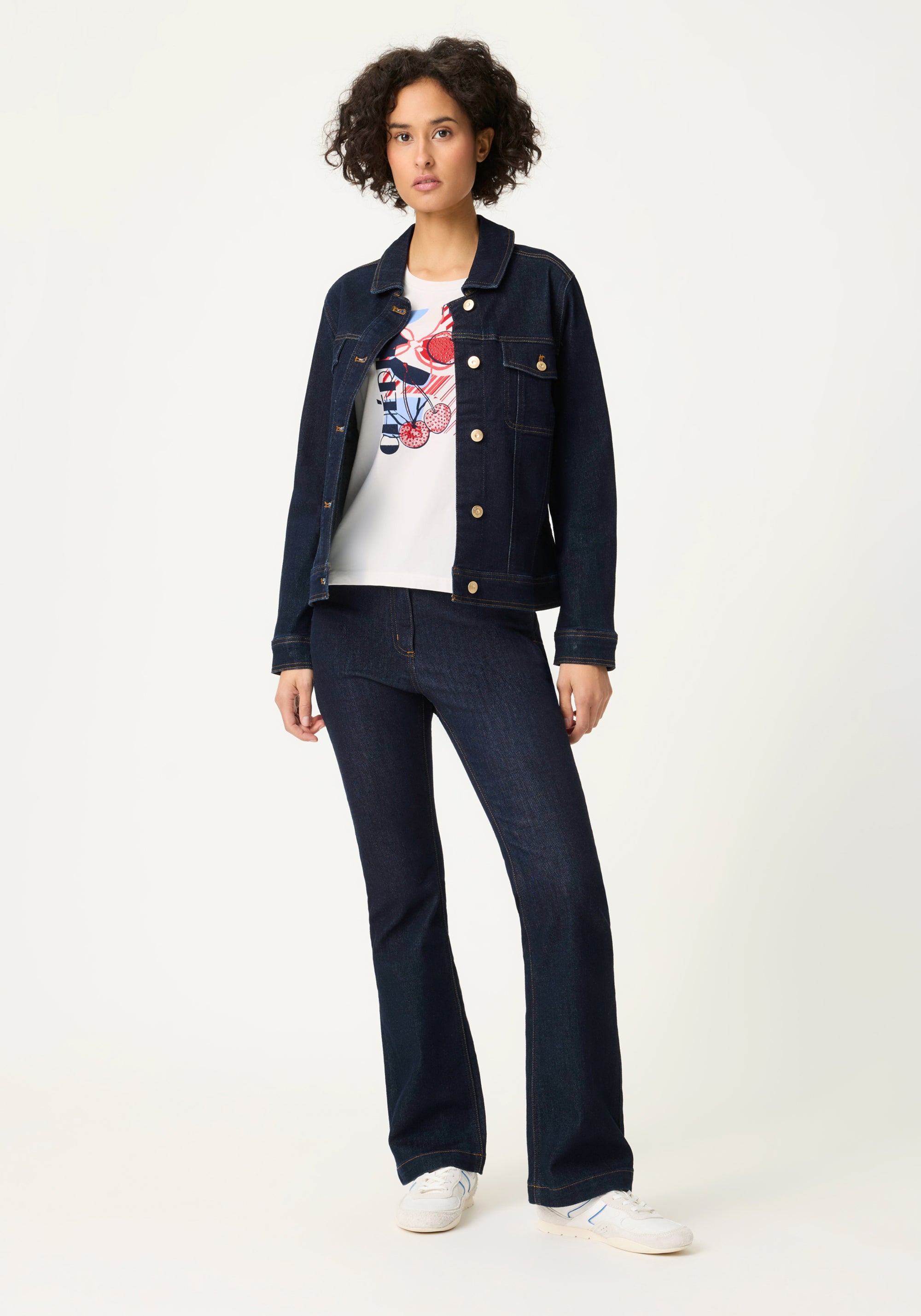 A cheerful warm-weather essential, this T-shirt stands out with a bright, playful placement print that brings instant charm to everyday looks.
