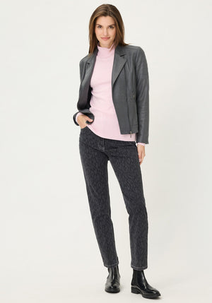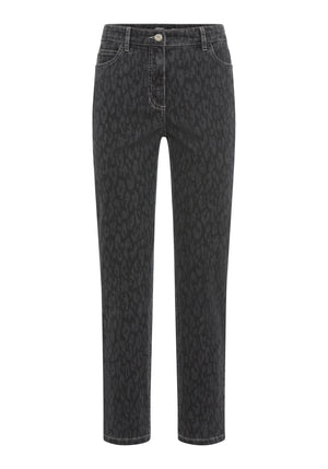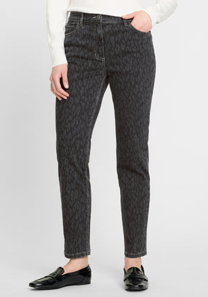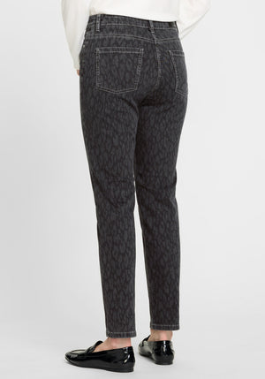 Our popular Mona fit jean is upgraded with a subtle washed allover leopard print for a stylish twist.