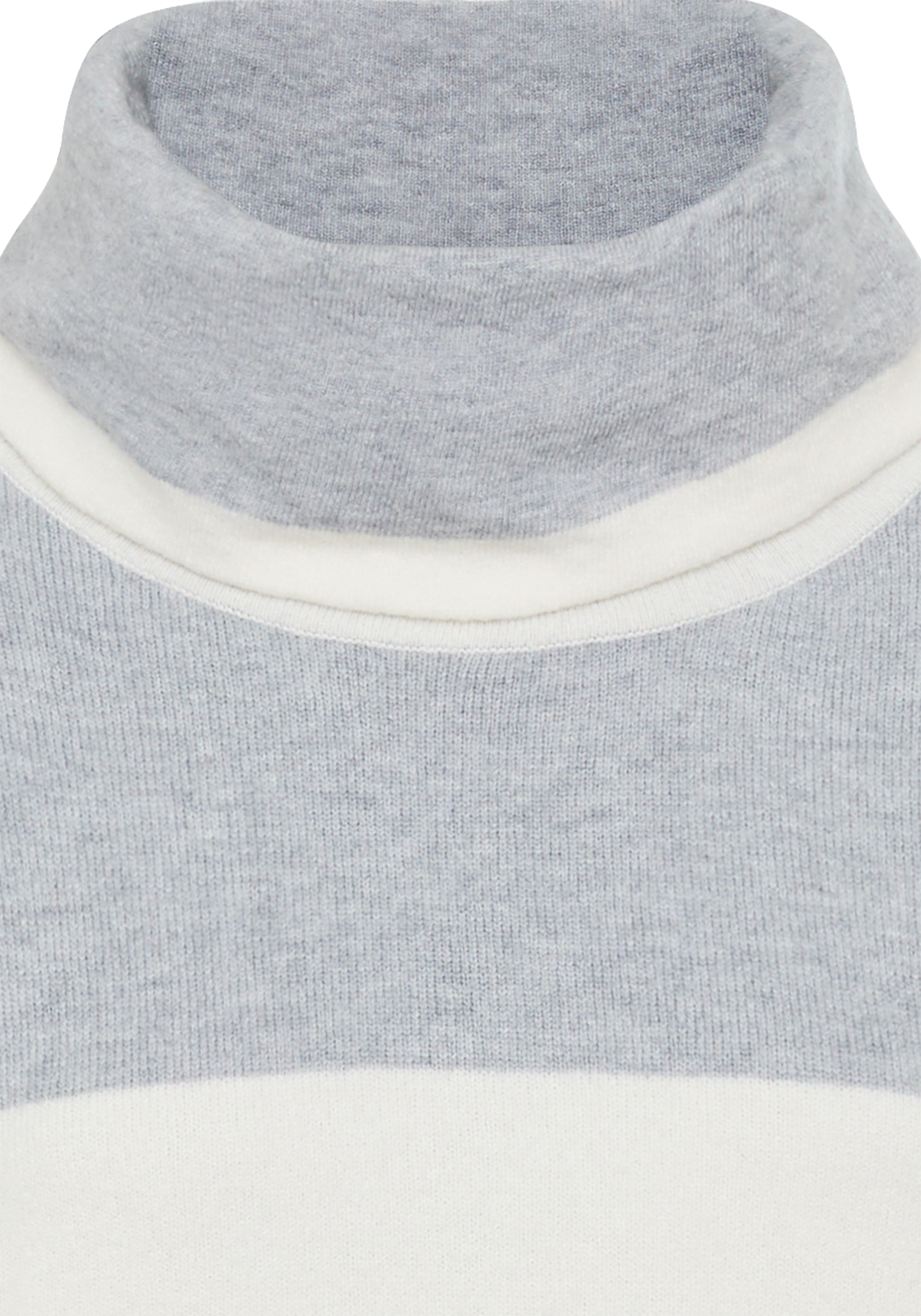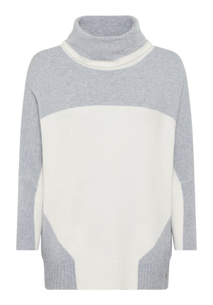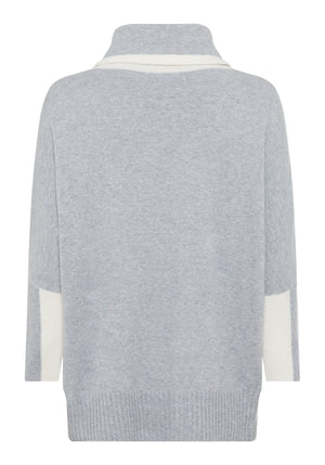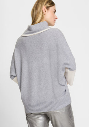 Trending elements like an oversized silhouette, cowl neckline, and color blocking make this sweater a contemporary addition to your wardrobe.