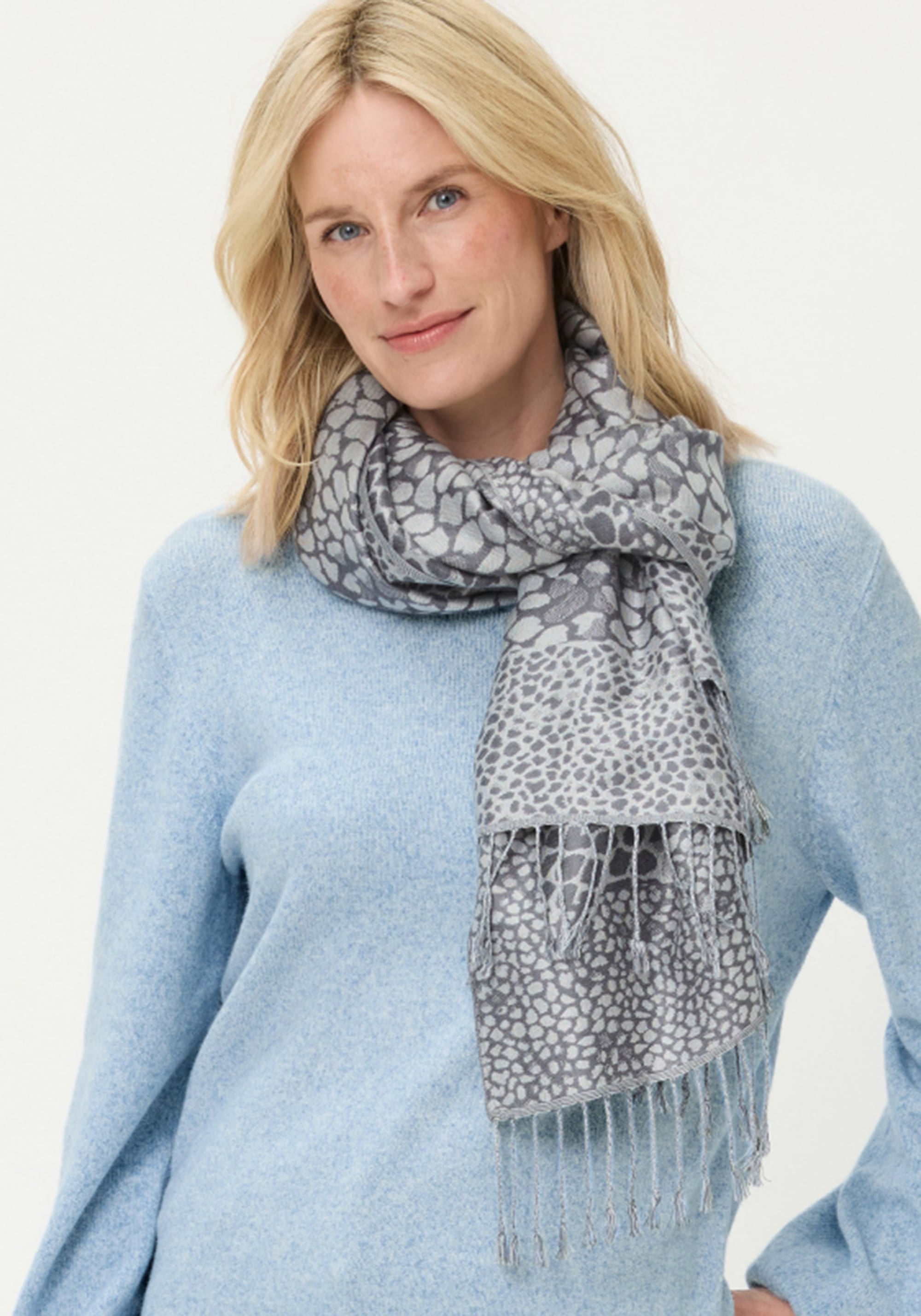 A stylish accessory with an allover pebble design, this mid-size scarf adds modern flair to any outfit.