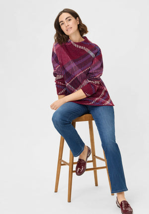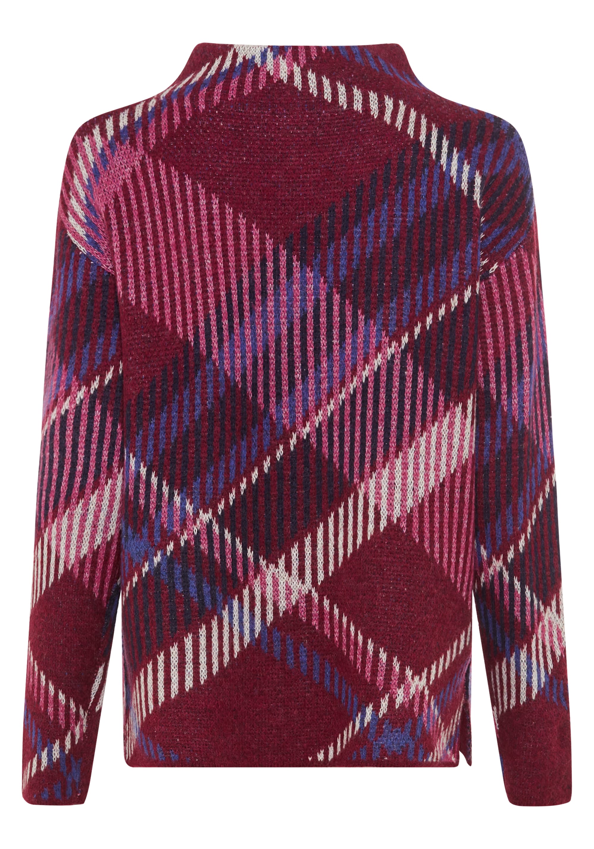 This sweater features a bold, up-close plaid pattern that makes a confident style statement.