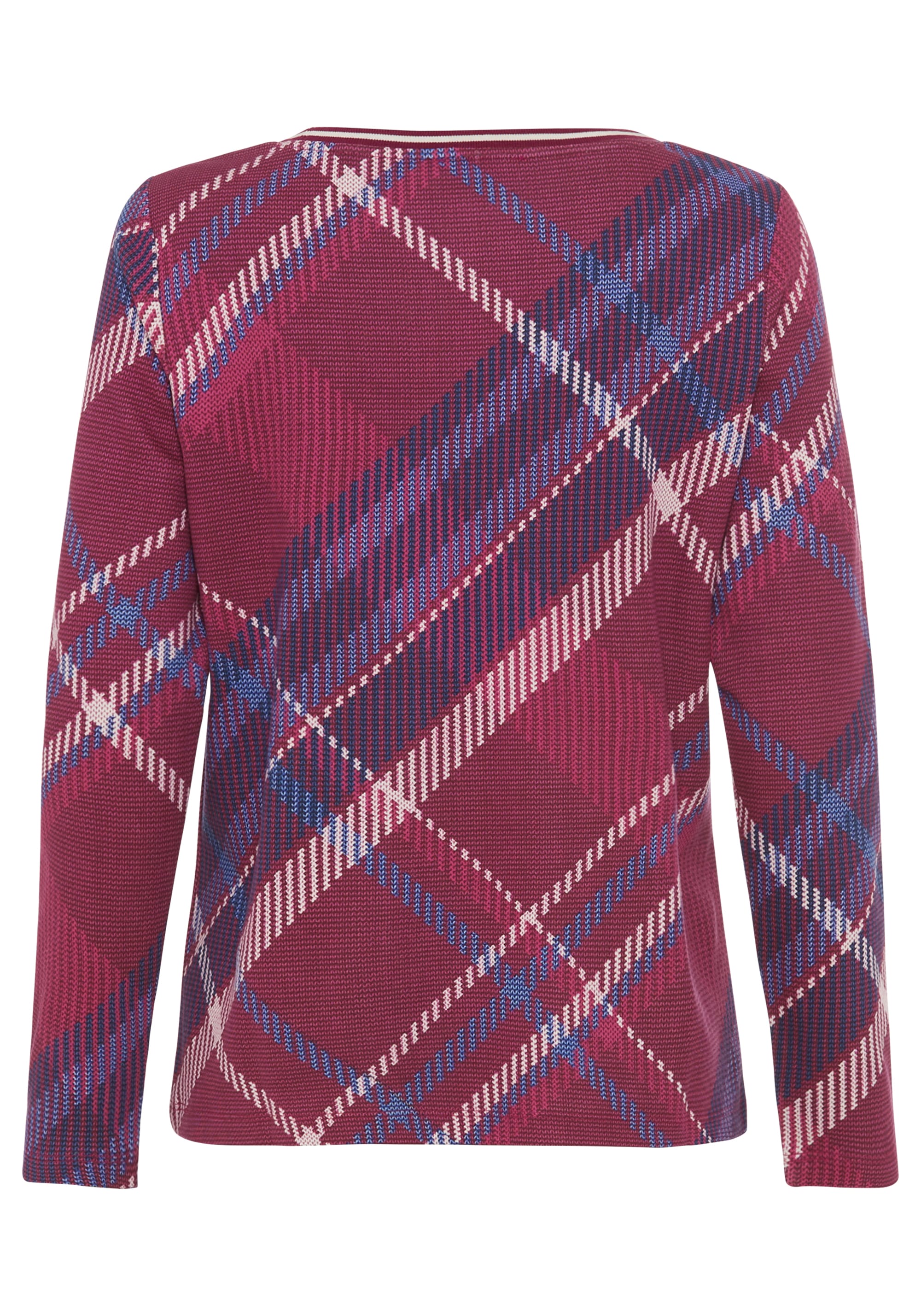 This sweater features a bold, up-close plaid pattern that makes a confident style statement.