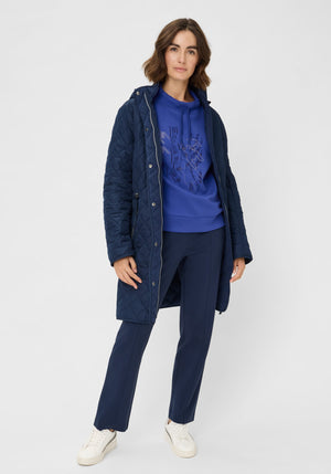 This top blends the smooth, soft feel of scuba jersey knit with a stylish touch of pizzazz.