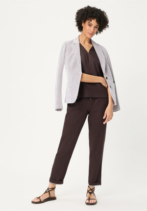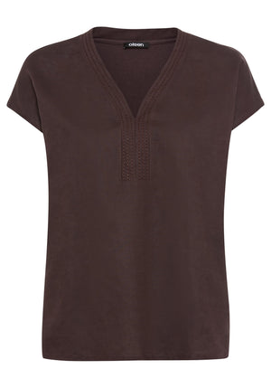 A modern mixed-media T-shirt with clean lines, combining different fabrics for a contemporary look and comfortable everyday wear.