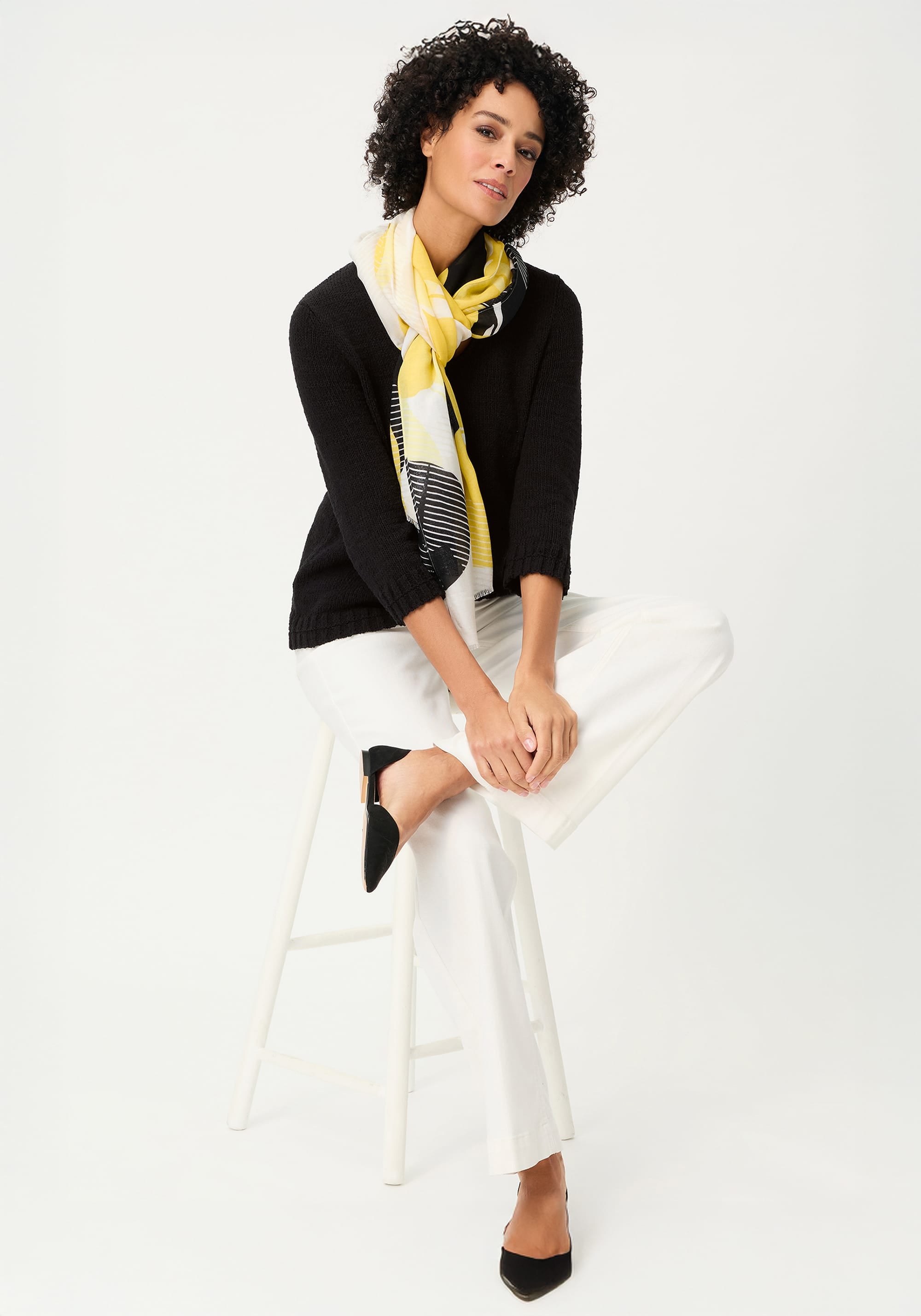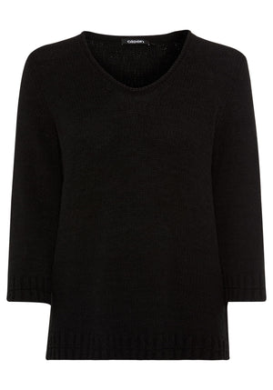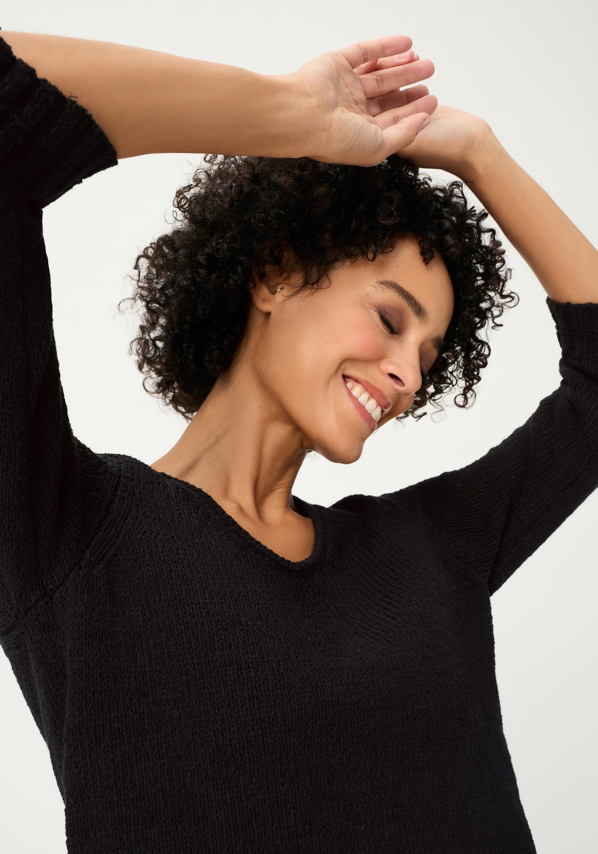 A timeless everyday sweater with a clean, feminine look, defined by its solid colour and softly rounded V-neckline that subtly highlights the décolleté.