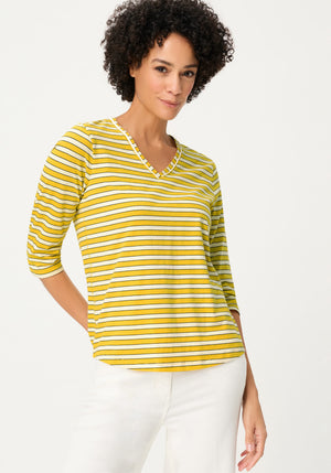 A fresh everyday T-shirt that pairs modern striping with a soft, feminine V-neck for an effortlessly light and polished look.