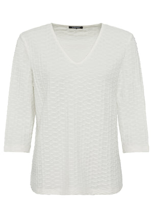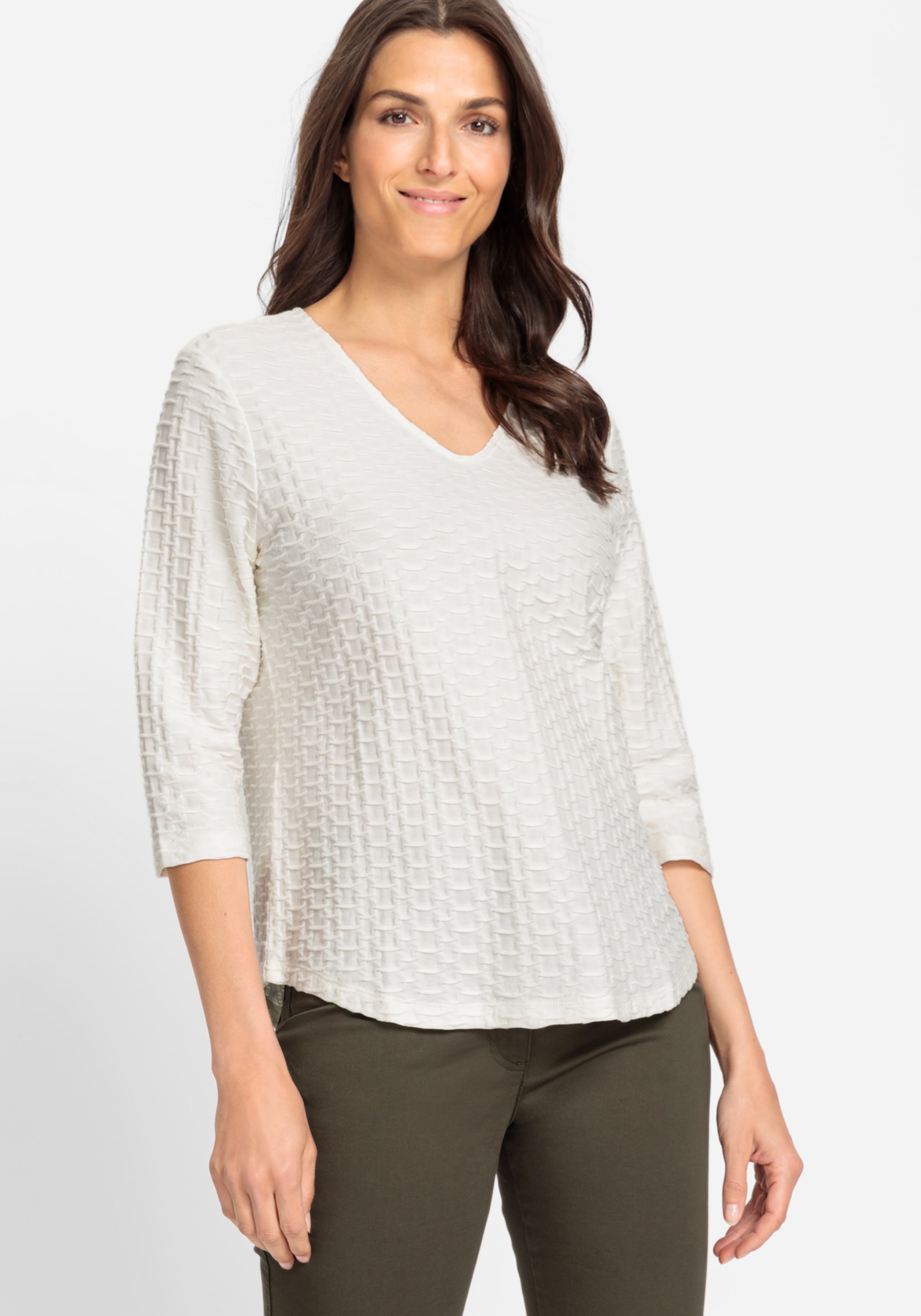 A midweight v-neck t-shirt adorned in a delightful allover woven texture.