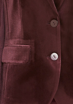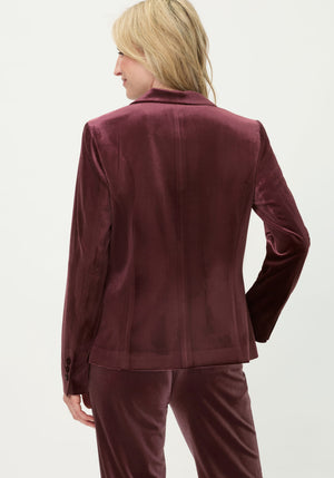 A luxurious blazer in a rich seasonal colour with velvety softness and a subtle shimmer.
