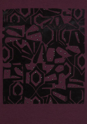 A chic scoop neck t-shirt elevated with an abstract front placement design for a modern touch.
